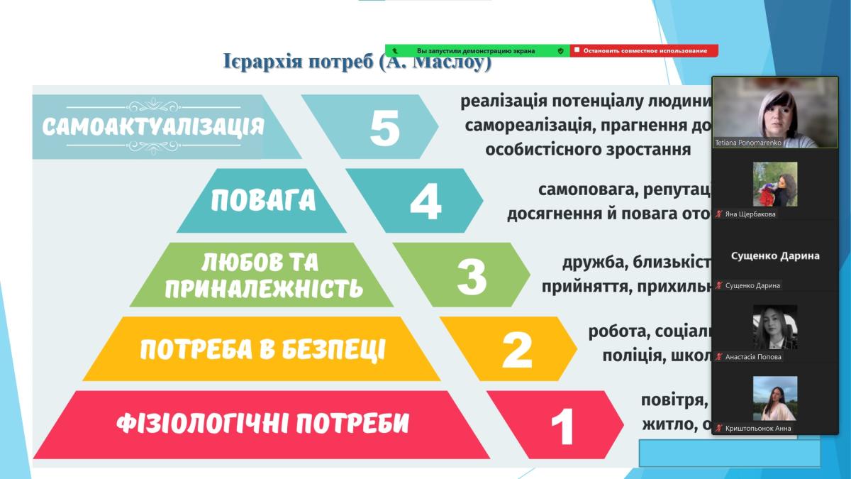 В межах викладання навчальної дисципліни «Філософія» доцентом кафедри гуманітарних дисциплін Сумської філії ХНУВС, кандидатом філософських наук Тетяною Пономаренко спільно з психологом філії Ганною Яровою проведене бінарне заняття на тему «Проблема людини у філософії» для першокурсників спеціальності 262 Правоохоронна діяльність.