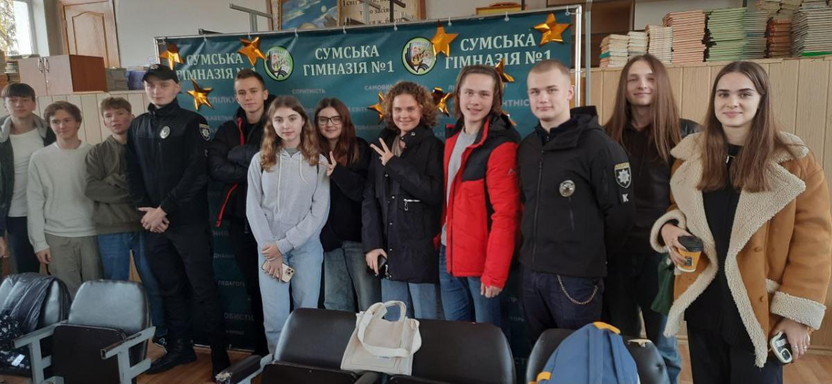 В умовах війни діти потребують особливої турботи та уваги. Через невеликий життєвий досвід і особливості дитячої психіки їм загрожує більше фізичних небезпек, ніж дорослим. Водночас існують інструменти, які дозволяють мінімізувати ризики та вберегти фізичне здоров’я дитини. Курсанти Сумської філії ХНУВС разом із доцентом кафедри гуманітарних дисциплін Ганною Довгополовою зустрілися зі старшокласниками КУ Сумська гімназія №1 та ознайомили дітей із важливими правилами безпеки під час війни.