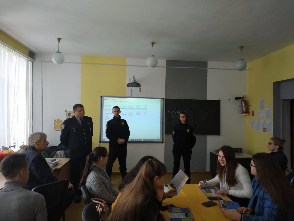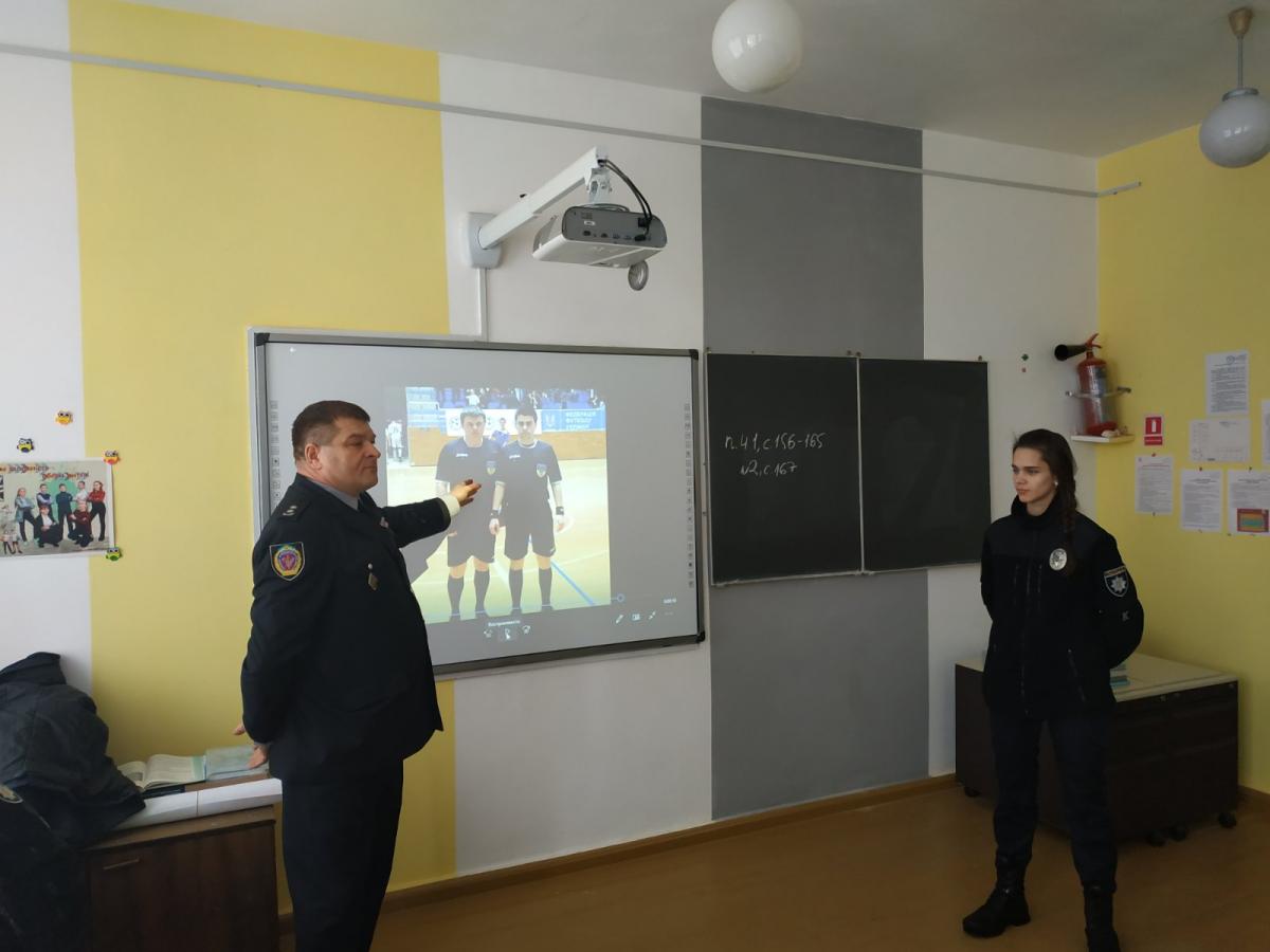 Директор Сумського центру первинної професійної підготовки «Академія поліції» Сумської філії Харківського національного університету внутрішніх справ підполковник поліції Вячеслав Драновський з курсантами 1-го курсу Вікторією Шендрик та Іллею Кошманом провели для учнів 10-го та 11-го класів Стецьківської ЗЗСО І-ІІІ ступенів Сумської районної ради Сумської області профорієнтаційне заняття.