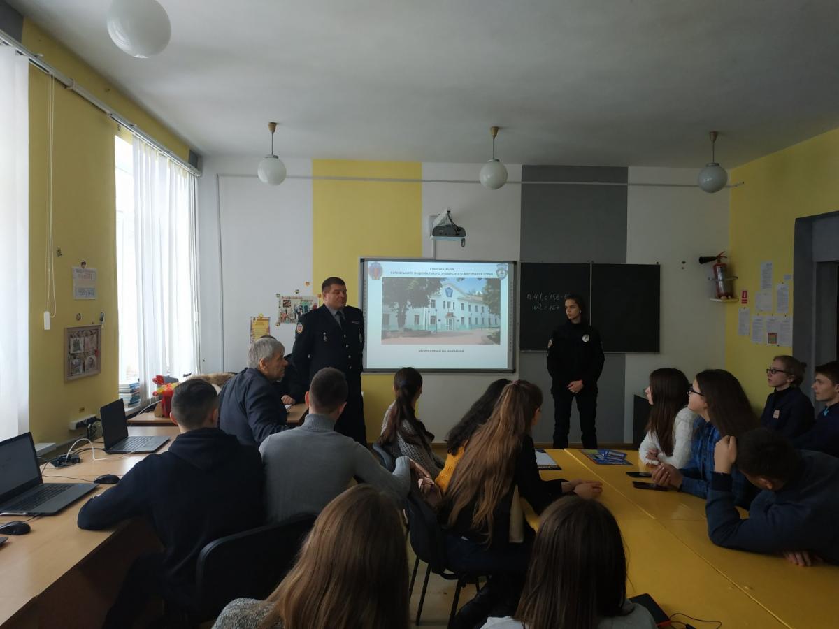 Учням була надана інформація щодо умов вступу та навчання у Сумській філії Харківського національного університету внутрішніх справ за всіма спеціальностями та формами навчання.