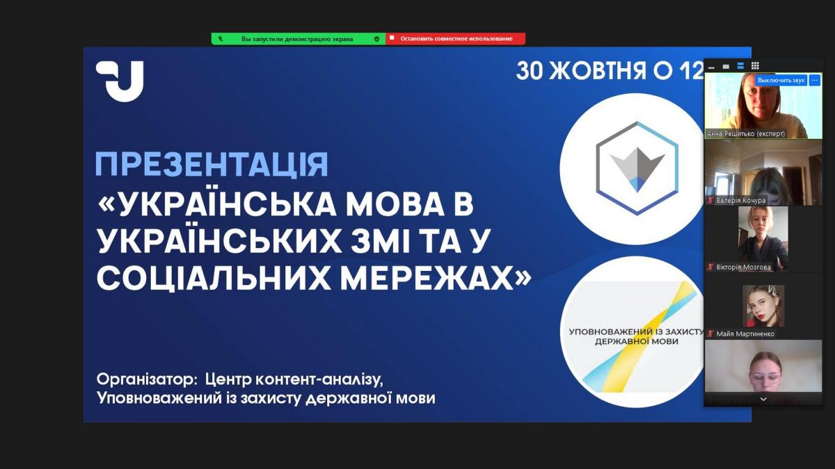 В умовах збройної агресії рф проти України надважливим є завдання утвердження української – як мови національної безпеки та лінгвального інтегратора українського суспільства. Зважаючи на це, серед освітян Сумської філії ХНУВС відбулося панельне обговорення презентації дослідження «Українська мова в українських ЗМІ та у соціальних мережах», яку представляли керівник аналітичного відділу Центру контент-аналізу Сергій Стуканов та Уповноважений із захисту державної мови Тарас Кремінь.