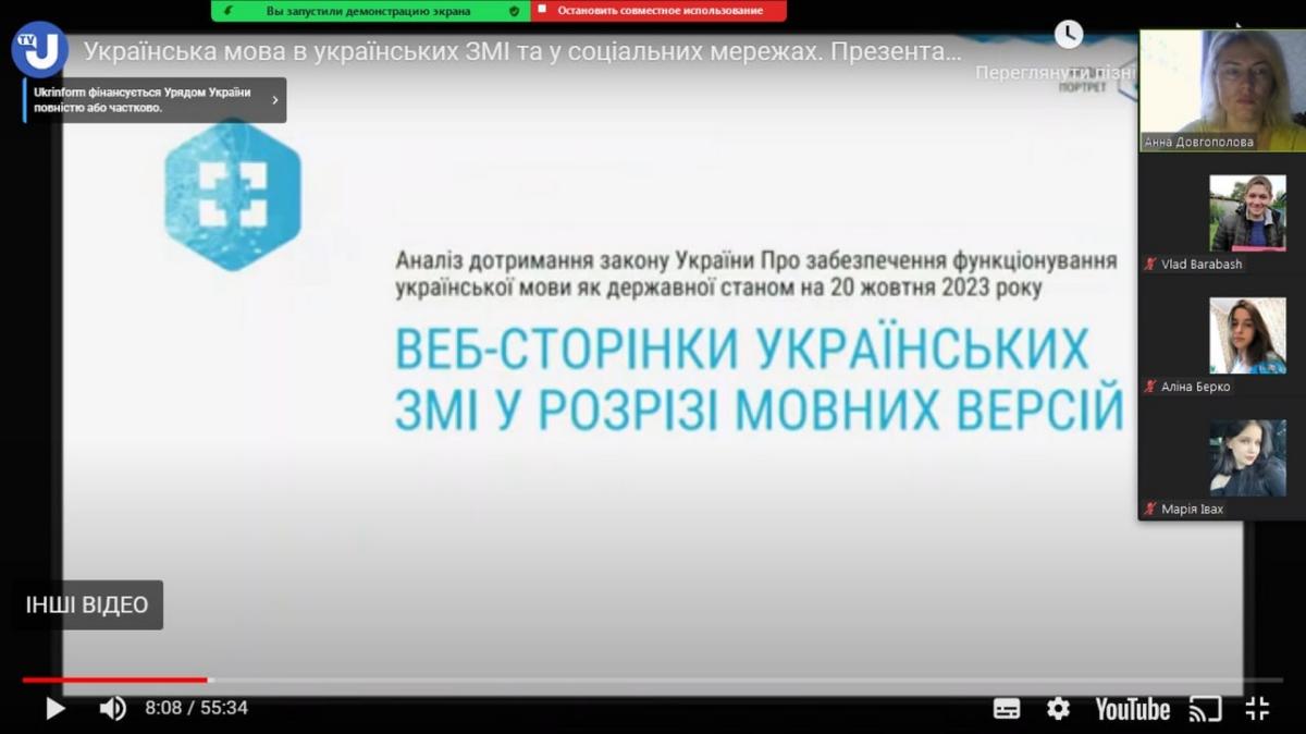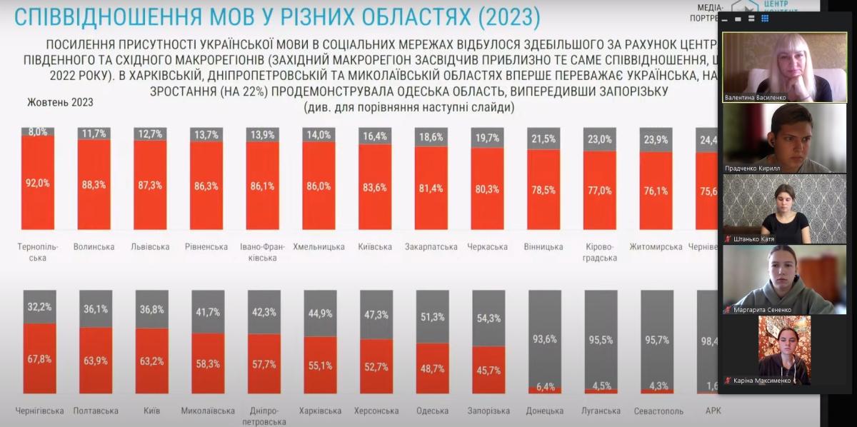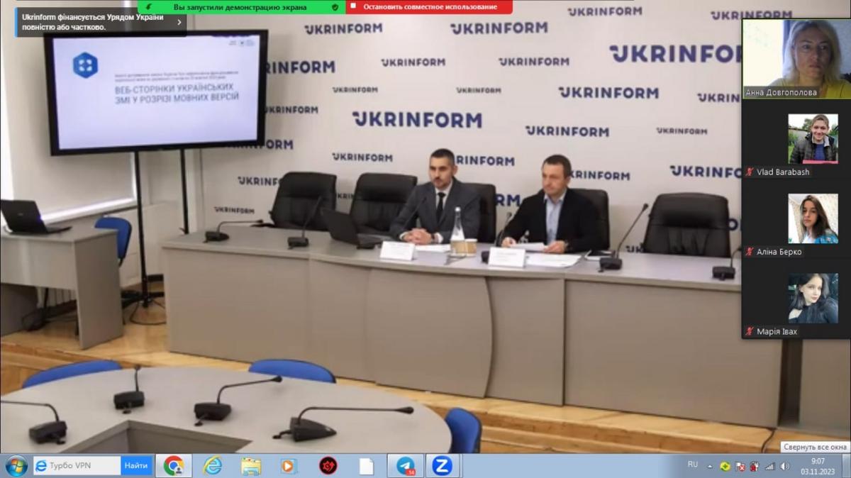 У межах даної презентації було представлено два дослідження: «Веб-сторінки українських ЗМІ у розрізі мовних версій» та «Українська мова в соціальних мережах» (оцінка вживання української та російської мов в українському сегменті соціальних мереж у жовтні 2023 року та порівняння із даними 2020 та 2022 років).