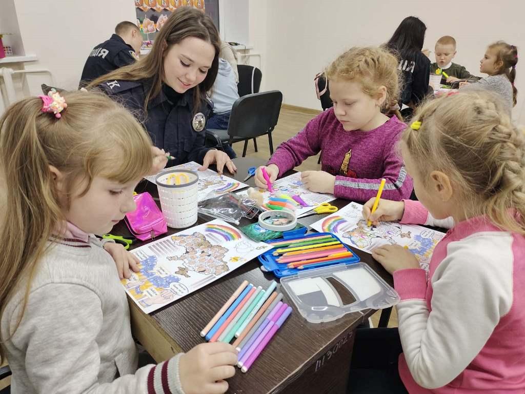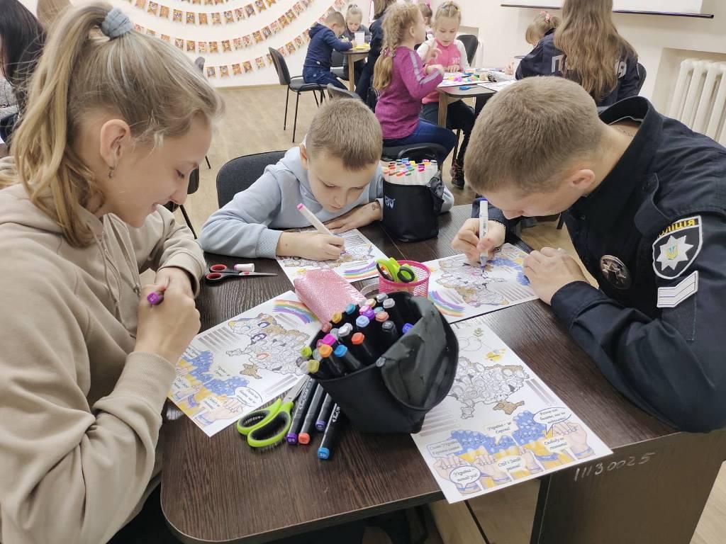 У ході зустрічі курсанти-волонтери познайомили дітей-гуртківців із професією поліцейський, провели цікаву, пізнавальну вікторину, подарували вихованцям хобі-студії дизайну та технологій "Щасливий час" творчі матеріали і солодощі та разом виготовили патріотичну поробку "Вільні творити майбутнє".