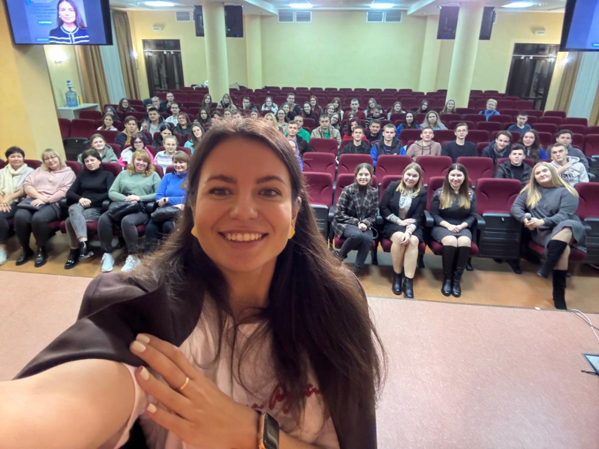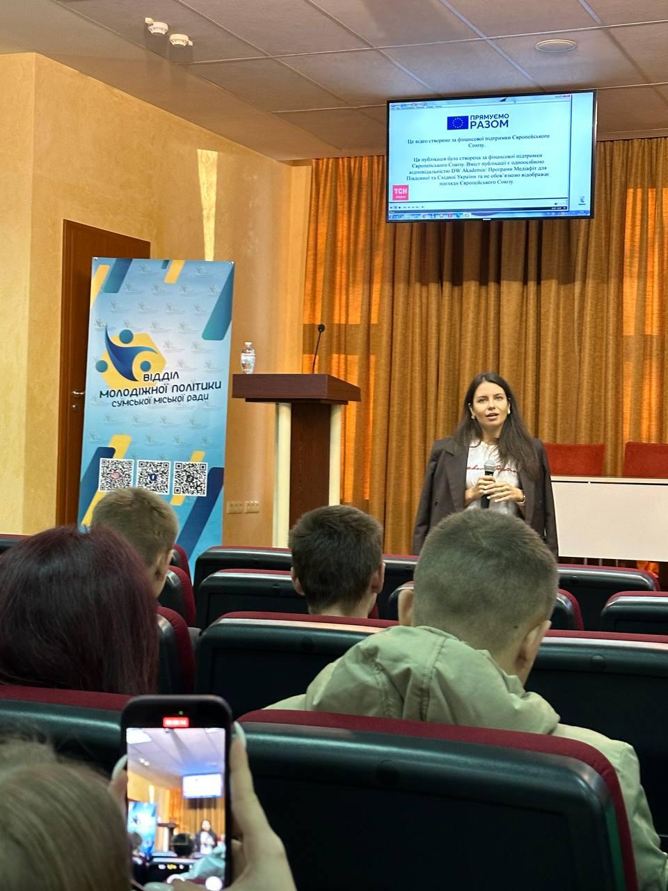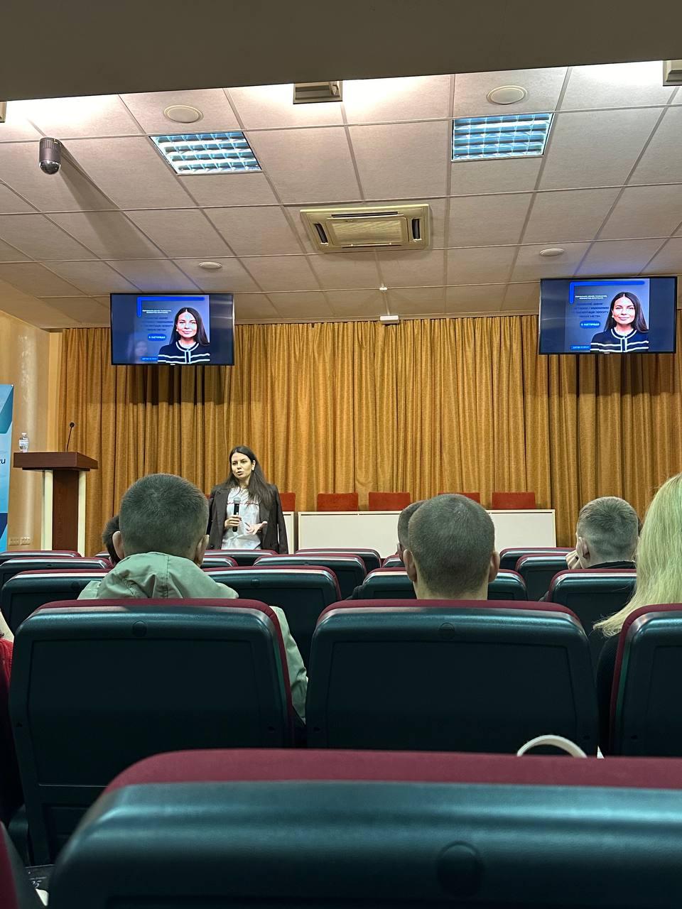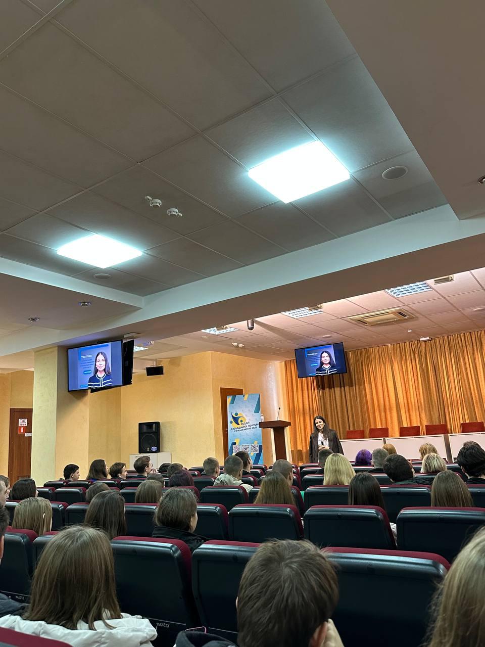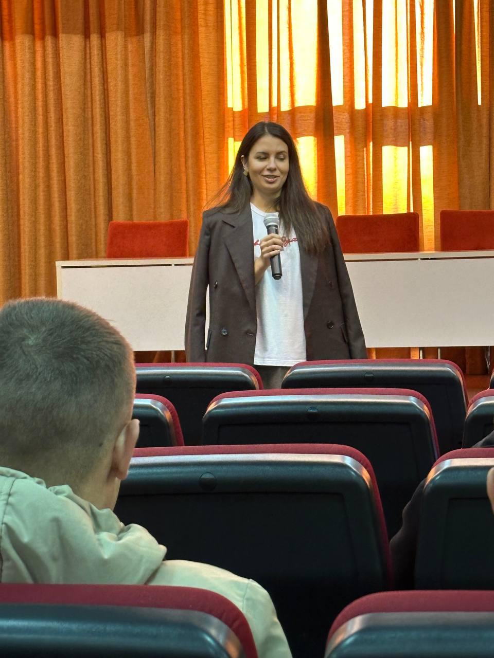 Пані Вікторія цікаво та змістовно ділилася враженнями про міста, що зазнали російської агресії. Спілкуючись із молоддю, спікерка розповіла про свій досвід у волонтерстві, наголосила на цінності волонтерів, які через свою громадянську позицію роблять вагомий внесок у відстоювання незалежності держави.