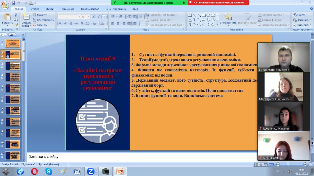 Також Маргарита Леонідівна підготувала яскраву презентацію, де висвітлила та детально проаналізувала успішні кейси щодо ефективного державного регулювання економіки в різних країнах світу та в Україні, в тому числі у воєнний час, акцентувала увагу на проблемних питаннях пошуку ефективних форм і методів державного регулювання економіки в складних умовах невизначеності воєнного часу, формування та впровадження в життя дієвих важелів впливу на основі ґрунтовного аналізу і прогнозування реальних перспектив відновлення та розвитку економіки України у воєнний та повоєнний час, цікаво та професійно відповіла на всі питання студентів.