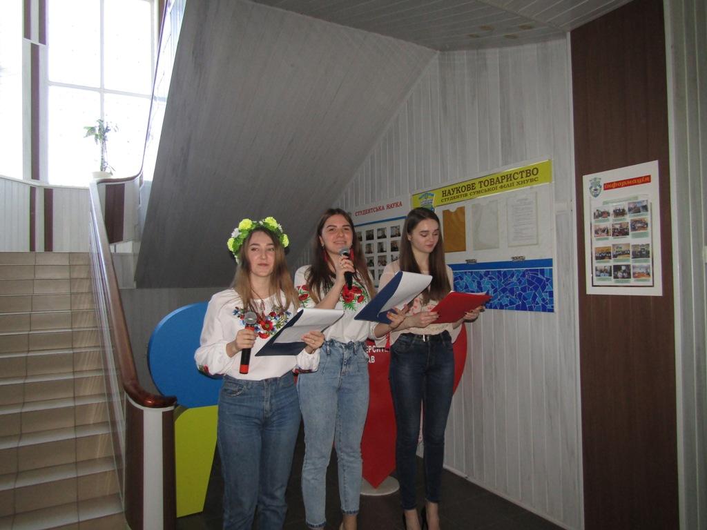Цікаву театралізовану програму підготували студенти філії Мартиненко Анна, Радчук Аліна, Ткаченко Ірина. До концертної програми долучилися солісти вокальної студії Коваленко Євгенія та Анпілогова Ярославна.