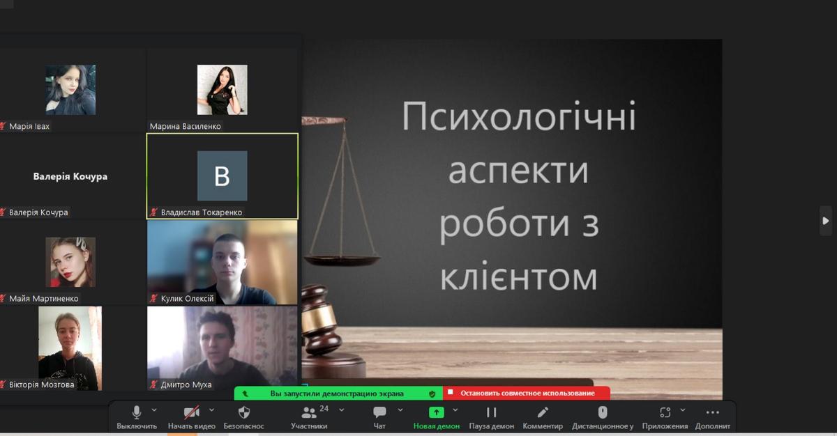 Юрист-практик у ході заняття наголосила, що використання системи інструментів міжособистісних комунікацій для юриста починається, як правило, зі спілкування з людиною, що звернулася до нього за правовою допомогою. У свідомості юриста-початківця, до якого вперше звернулися за професійною порадою, виникає безліч питань. Деякі ключові питання, які стосуються психологічних аспектів роботи з клієнтами та особливостей спілкування з ними, визначили і обговорили здобувачі вищої освіти у форматі квест-коучингу. Зокрема, це наступні: