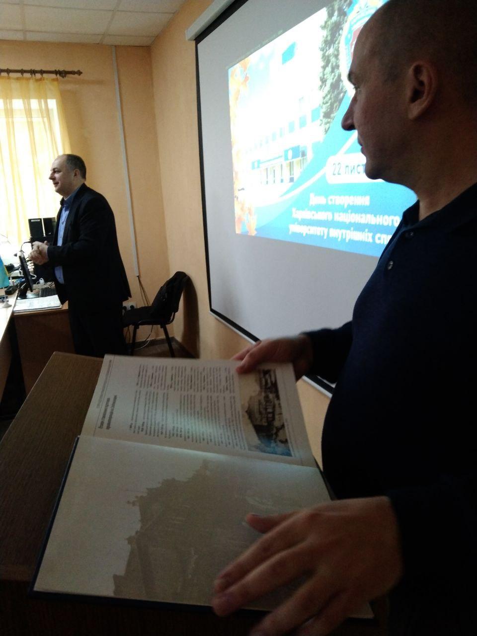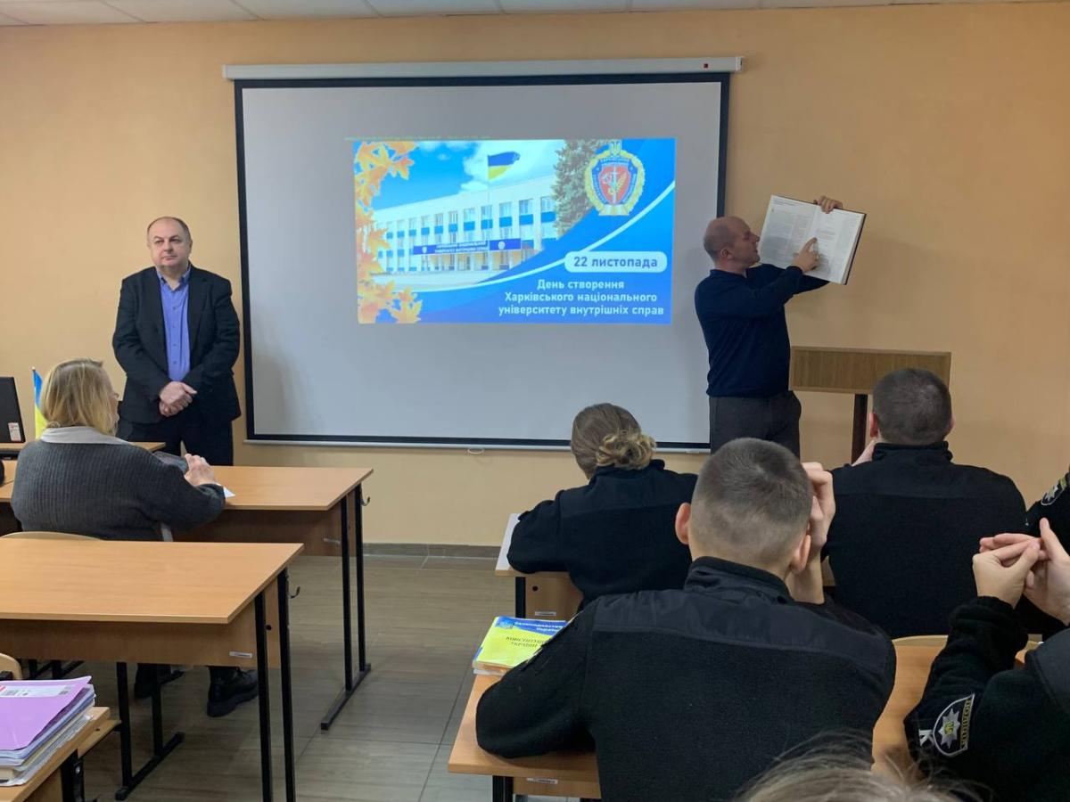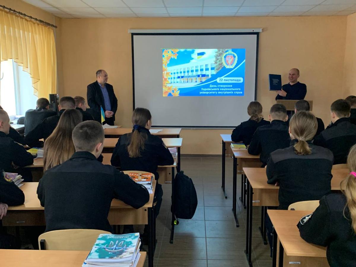 З нагоди Дня заснування Харківського національного університету внутрішніх справ для курсантів другого курсу Сумської філії було проведено виховний захід «Історія моєї Alma mater» за участю викладачів кафедри юридичних дисциплін Сумської філії професора Олексія Шуміла та старшого викладача Андрія Сядристого.
