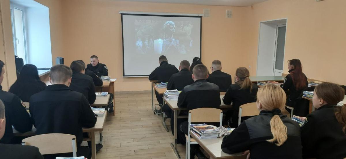 Курсанти переглянули документальний фільм про перебіг трагічних подій голодомору 1932 – 1033 років, їх наслідки, та хвилиною мовчання вшанували мільйони загиблих.