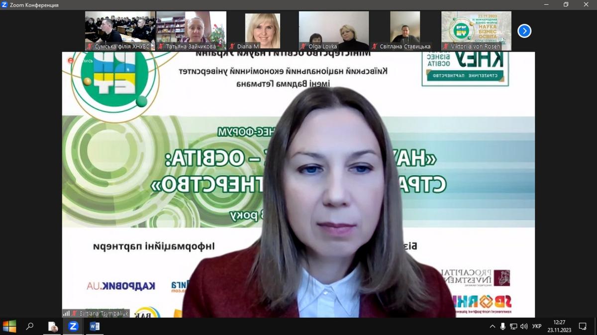 В межах навчальної дисципліни «Професійно-психологічна підготовка поліцейського» здобувачі вищої освіти спільно із доценткою кафедри гуманітарних дисциплін Сумської філії ХНУВС Тетяною Пономаренко 23 листопада 2023 року долучилися до дискусійної панелі «Місія університету в збереженні ментального здоровʼя в умовах війни» ХІ бізнес-форуму «Наука-бізнес-освіта: стратегічне партнерство», що був організований Київським національним економічним університетом імені Вадима Гетьмана.