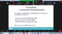 Доповідач, маючи власний багатий досвід роботи у різних країнах із високим рівнем корупції, розповів про структуру зв’язку представників різних верст суспільства і їх поведінку у корупційних відносинах; обґрунтував необхідність та важливість питання щодо подолання корупції на різних рівнях, а також зазначив, що необхідно впроваджувати зміни на законодавчому рівні для подолання будь-яких проявів корупції.
