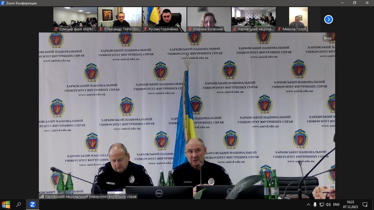 Здобувачі вищої освіти Сумської філії ХНУВС спільно із доцентками кафедри гуманітарних дисциплін Тетяною Пономаренко та Ганною Довгополовою долучилися до участі у науково-практичній конференції «Захист та дотримання прав громадян органами Національної поліції України в умовах воєнного стану», організованій до Дня прав людини Харківський національним університетом внутрішніх справ.