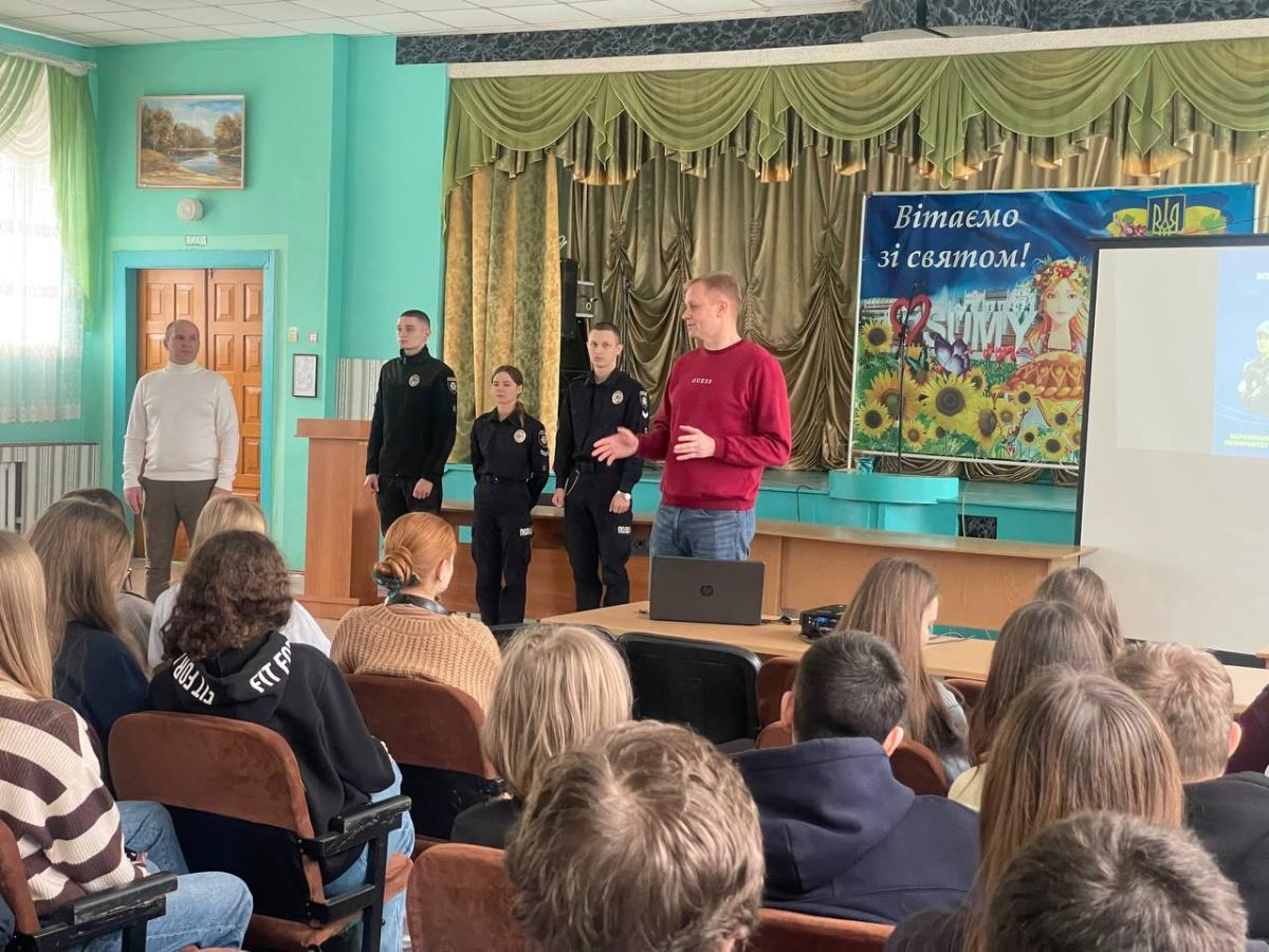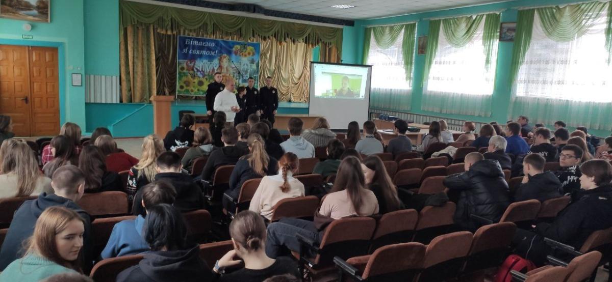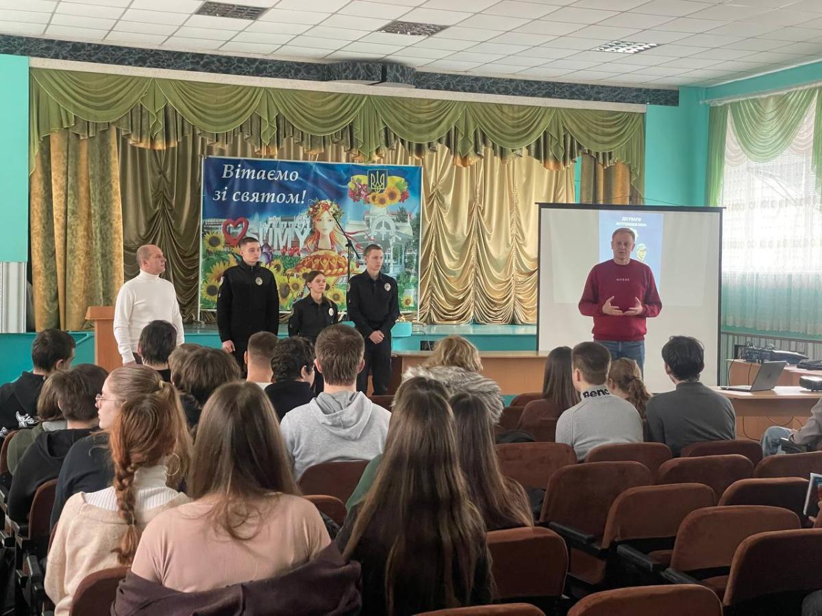 У рамках проведення профорієнтаційної роботи провідний фахівець Валерій Кудрявцев, старший викладач кафедри юридичних дисциплін Андрій Сядристий, за участю курсантів Сумської філії ХНУВС Андрія Левченка, Євгенії Середи, Максима Очинського, Віктора Поповського провели зустріч із учнями 10, 11 класів Сумського закладу загальної середньої освіти І-ІІІ ступенів № 10 Сумської міської ради.