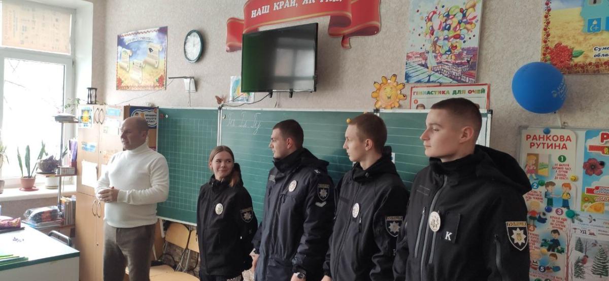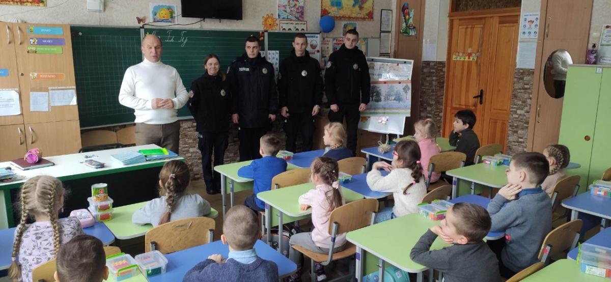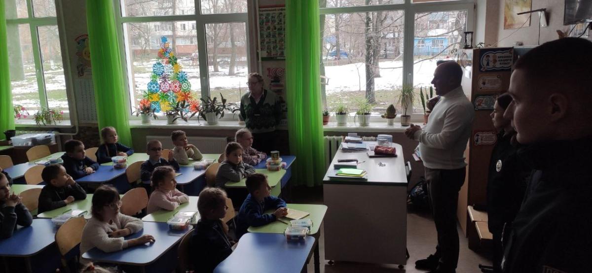 Також окремо було проведено тематичний захід на тему «Поліція очима дітей» серед учнів 1-А класу вищевказаної школи, в ході якого курсанти розповіли про основні завдання Національної поліції України та виконання службових обов’язків поліцейських по охороні громадського порядку.