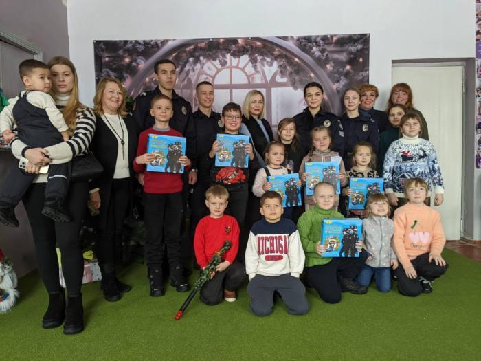 Здобувачі вищої освіти Харківського національного університету внутрішніх справ передали дітям різних міст України – Харків, Вінниця, Суми, Кам’янець-Подільський Хмельницької області – настільні ігри «Поліцейський на захисті правопорядку».