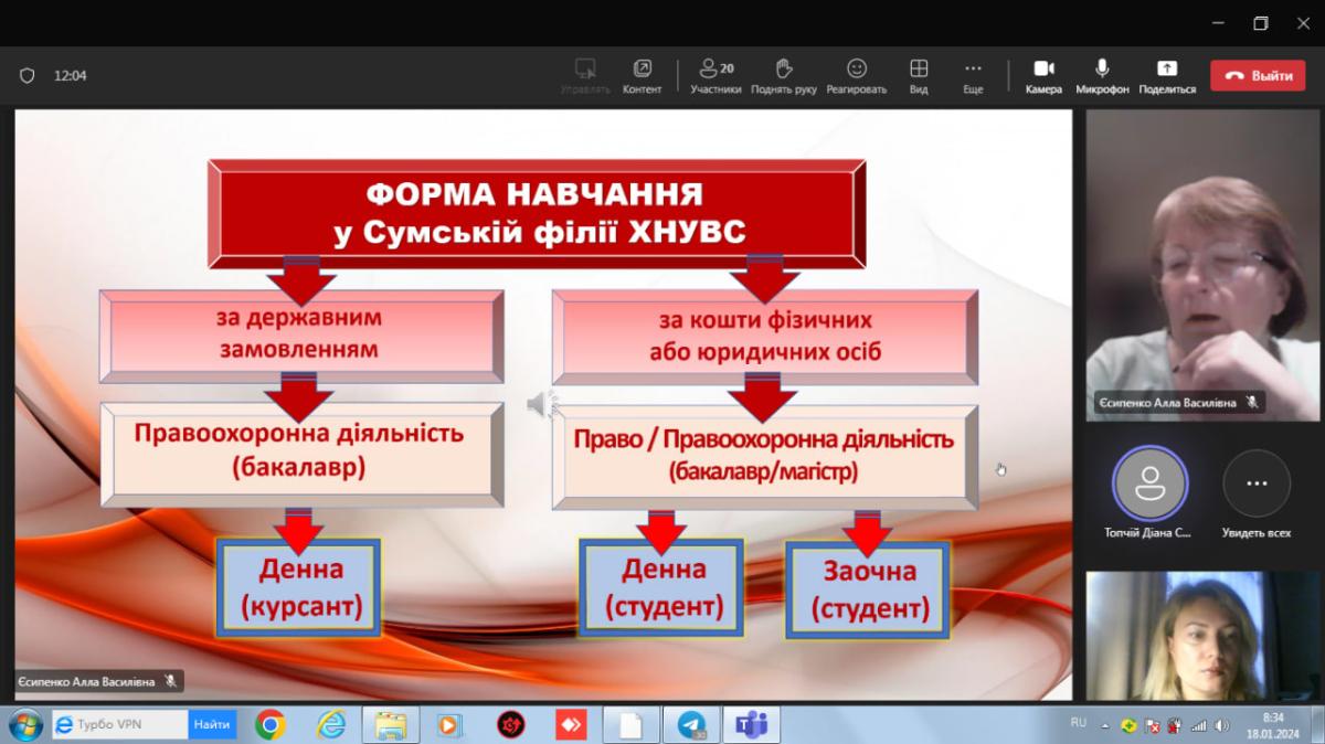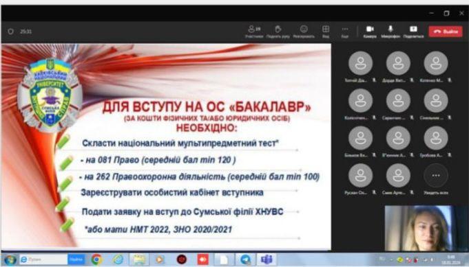Майбутні абітурієнти мали змогу також поставити питання щодо вступу до Сумської філії ХНУВС, умови навчання та черговість подання документів на спеціальності «Право» та «Правоохоронна діяльність», адже свідомий вибір майбутньої професії – запорука успішного майбутнього.