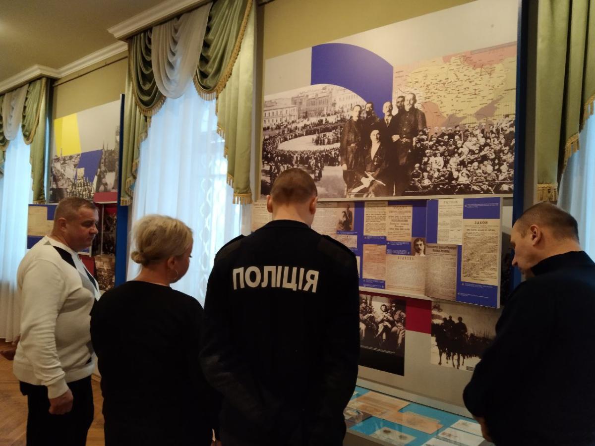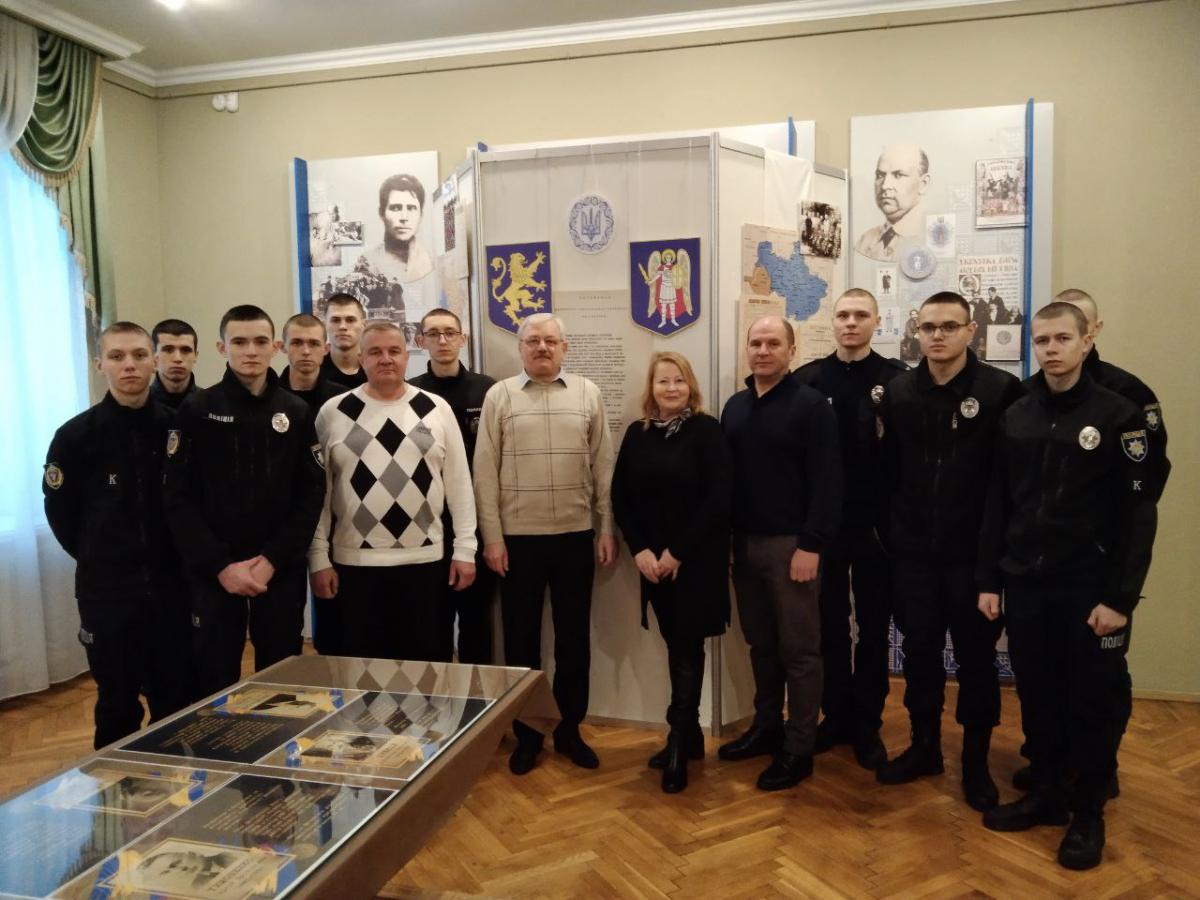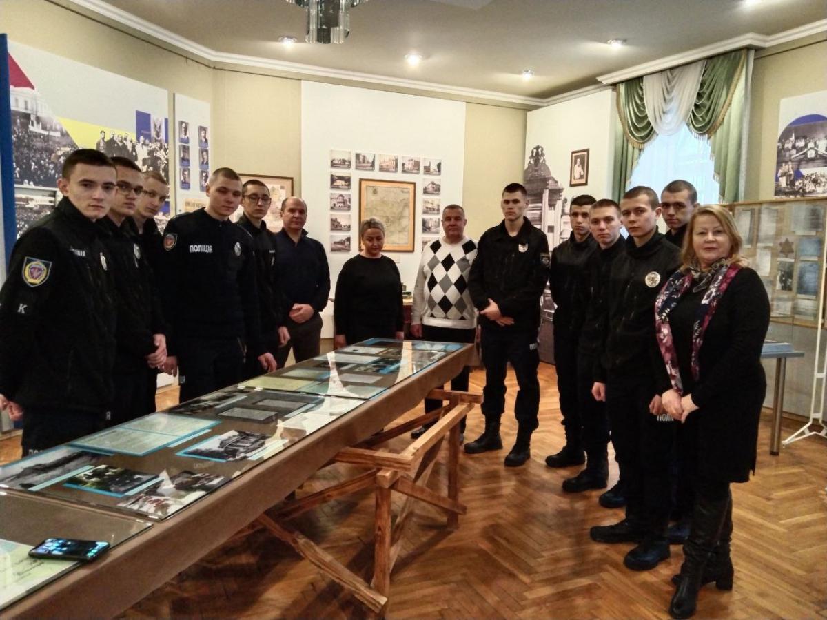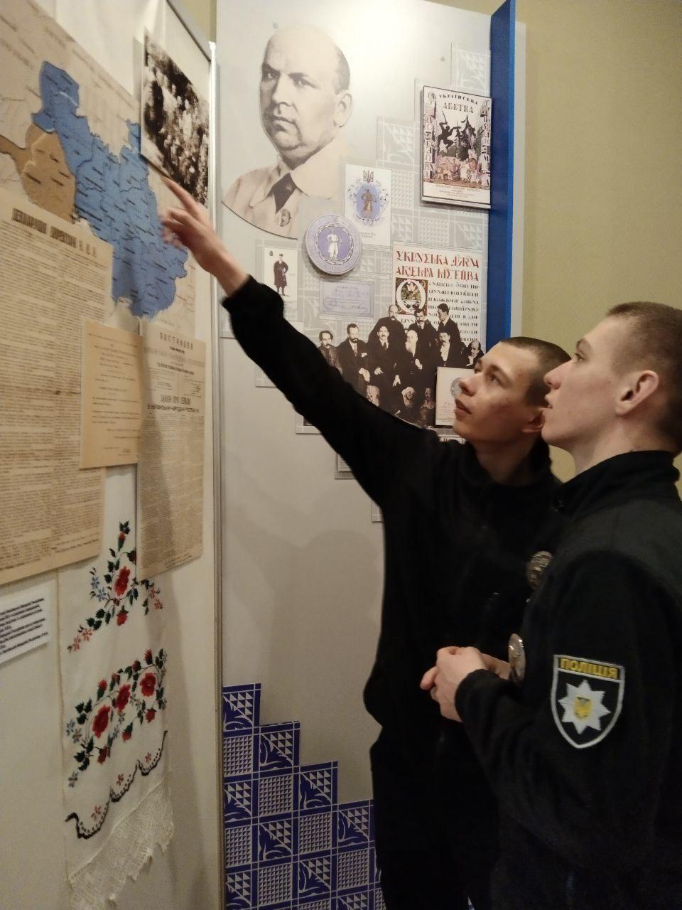 Науковий співробітник музею Олена Любива ознайомила курсантів із матеріалами виставки «За Соборну Україну», в якій представлені документи та фото з фондів музею та центральних архівних установ України; розповіла про історичні обставини та передумови бою під Крутами, переглянувши документи, в яких висвітлені спогади учасників тих подій та інші матеріали.