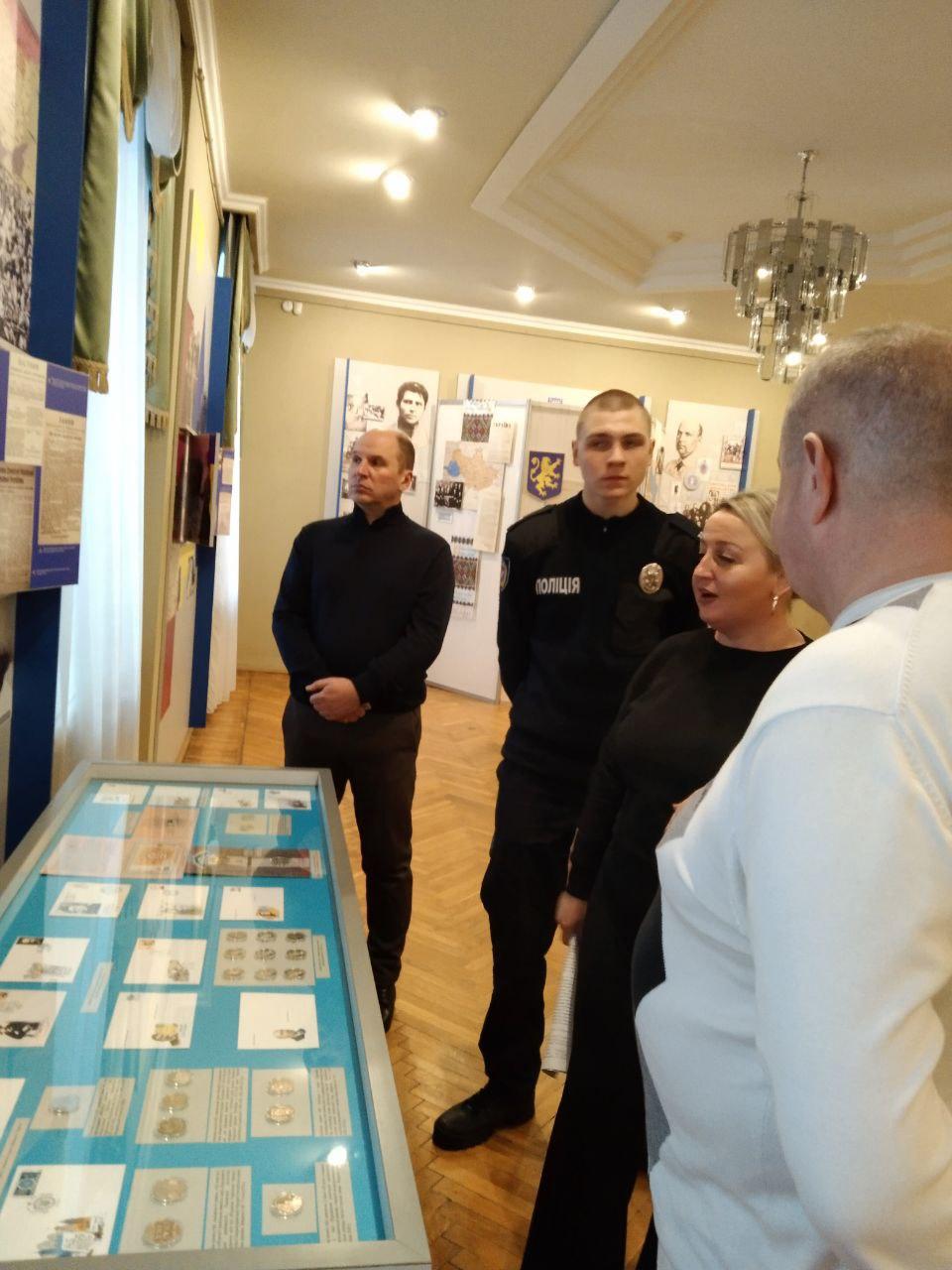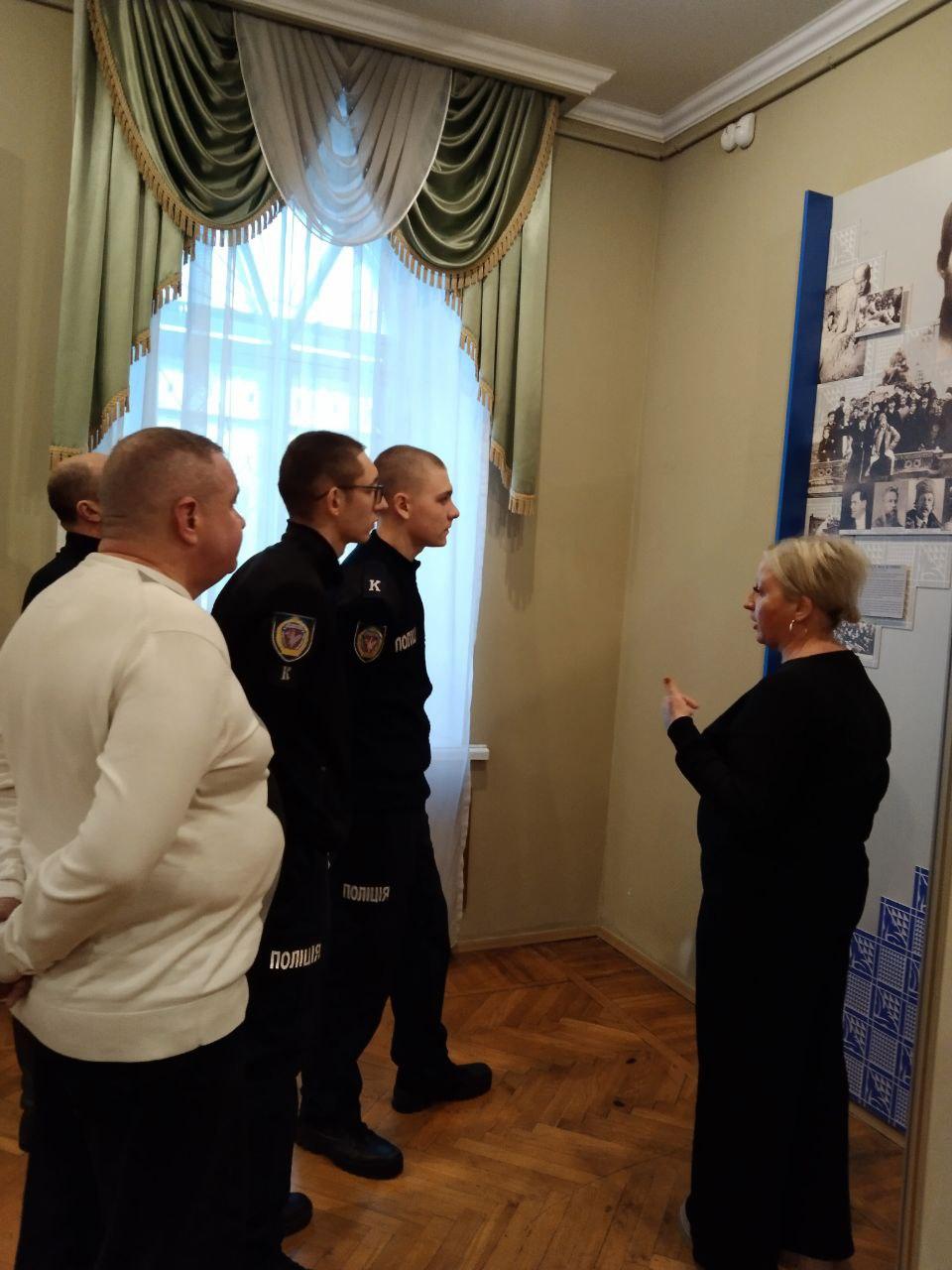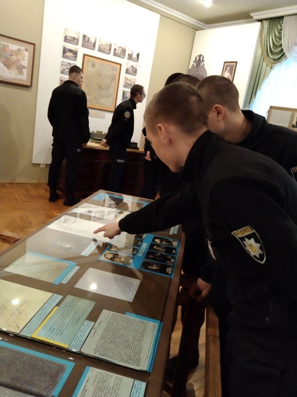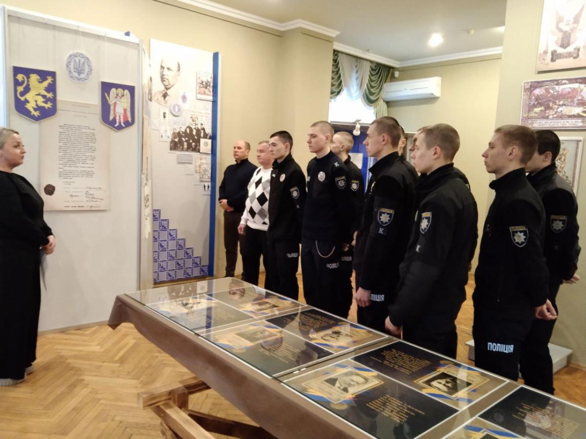 Науковий співробітник музею Олена Любива ознайомила курсантів із матеріалами виставки «За Соборну Україну», в якій представлені документи та фото з фондів музею та центральних архівних установ України; розповіла про історичні обставини та передумови бою під Крутами, переглянувши документи, в яких висвітлені спогади учасників тих подій та інші матеріали.