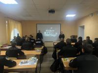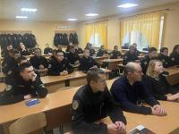 У рамках кураторської години старший викладач кафедри юридичних дисциплін Сумської філії ХНУВС Андрій Сядристий разом із провідною фахівчинею відділення кадрового забезпечення Ганною Мітітєл провели для курсантів 1 курсу патріотичний захід «Немеркнучі Крути».
