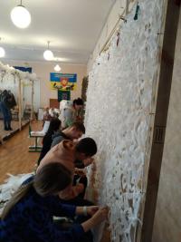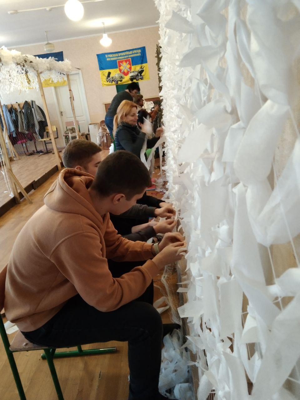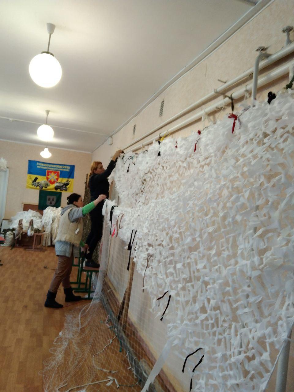 Цього дня, у тісній співпраці та дружній атмосфері, було виготовлено дві маскувальні сітки - білого та захисного кольору.
