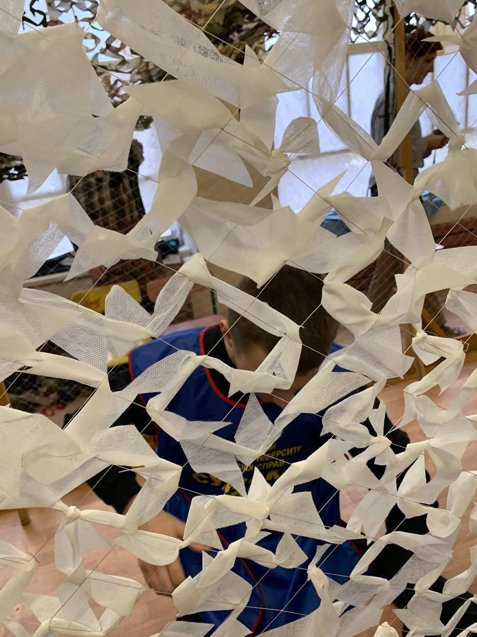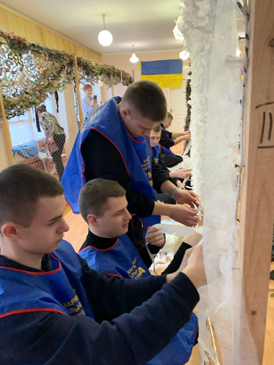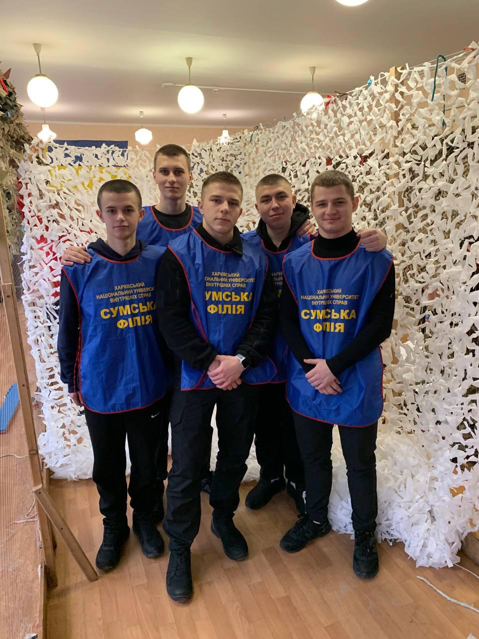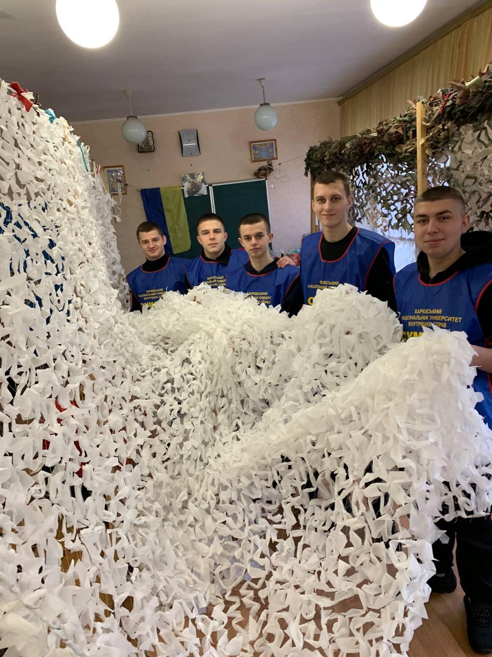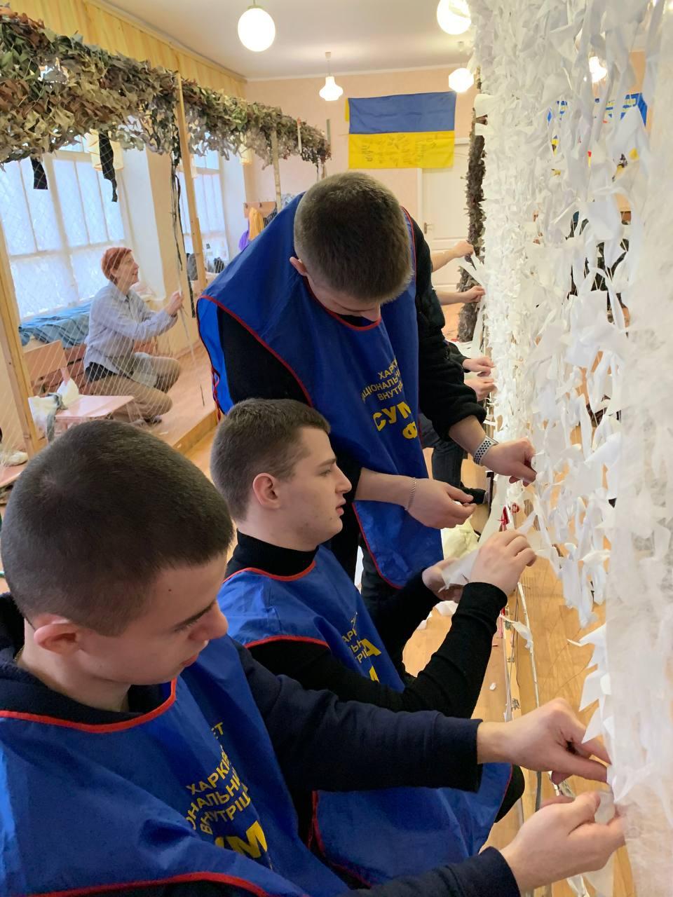 Курсанти-першокурсники Сумської філії Харківського національного університету внутрішніх справ активно долучаються до волонтерських ініціатив. Наразі соціально активні курсанти у вільний від навчання час продовжують благодійний марафон із виготовлення маскувальних сіток для потреб ЗСУ, які допомагають захистити позиції наших військових.