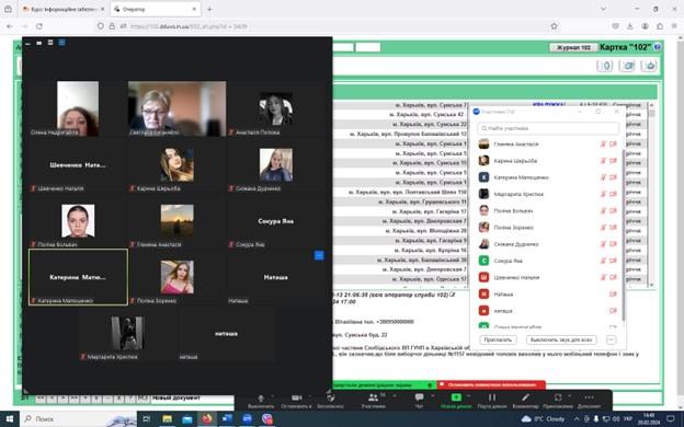Доцентом кафедри соціально-економічних дисциплін Сумської філії Харківського національного університету внутрішніх справ Світланою Виганяйло було організоване і проведено бінарне заняття з дисципліни «Інформаційне забезпечення професійної діяльності» на тему «Дослідження алгоритму функціонування системи централізованого управління нарядами поліції «Лінія 102»» за участі старшого інспектора сектору кадрового забезпечення Роменського РВП ГУНП в Сумській області майора поліції Олени Мартиненко та начальника чергової частини відділення поліції номер 1 (с. Недригайлів) Роменського РВП ГУНП в Сумській області капітана поліції Наталії Якименко