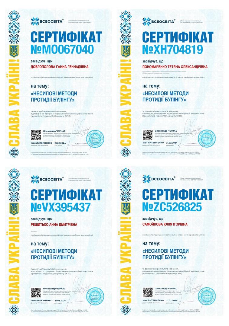 Викладачі кафедри гуманітарних дисциплін Сумської філії ХНУВС Юлія Самойлова, Анна Решитько, Ганна Довгополова та Тетяна Пономаренко взяли участь у Всеукраїнському вебінарі «Несилові методи протидії булінгу», щоб використовувати набуті знання в кураторській виховній роботі зі своїми групами.