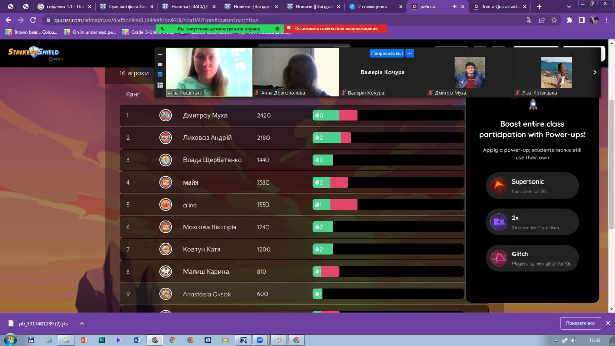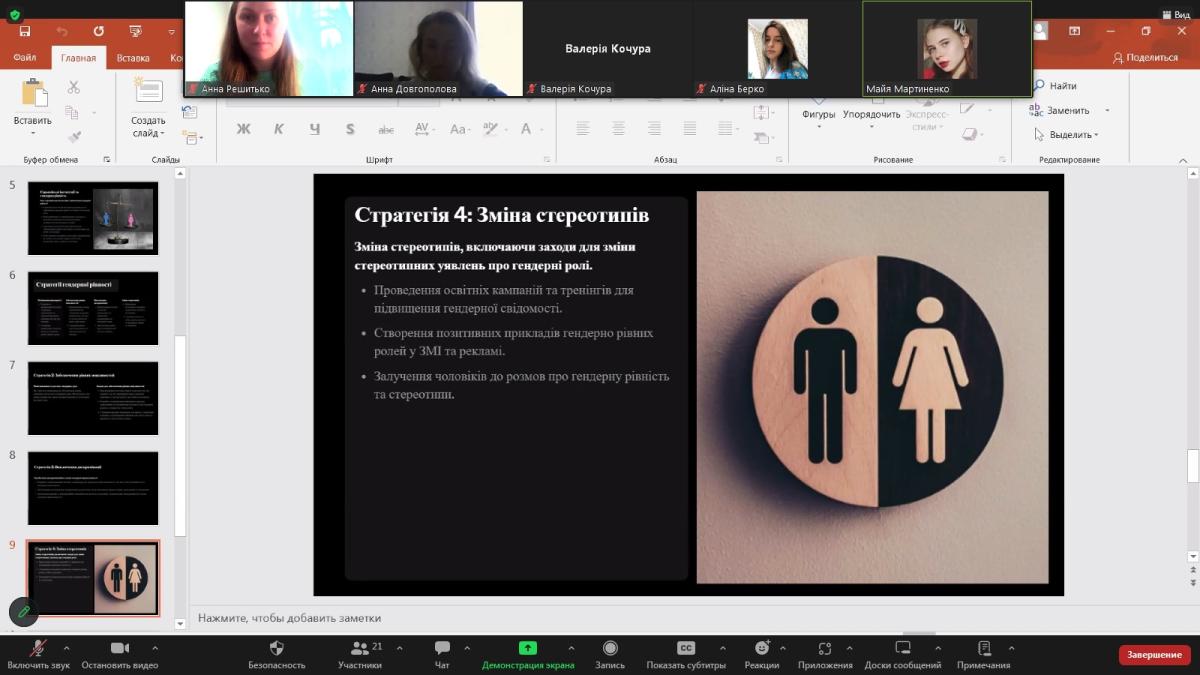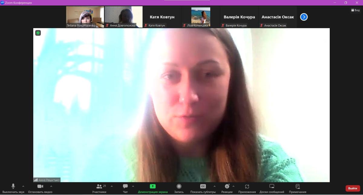 Анна Решитько презентувала здобувачам вищої освіти технології ігрових методик, що дозволяють формувати гендерну культуру в поєднанні з вивченням англійської мови, що викликало зацікавлення та бажання безпосередньо на засіданні гуртка пройти тест на платформі Quizziz з теми «Gender Equality».
