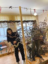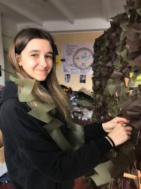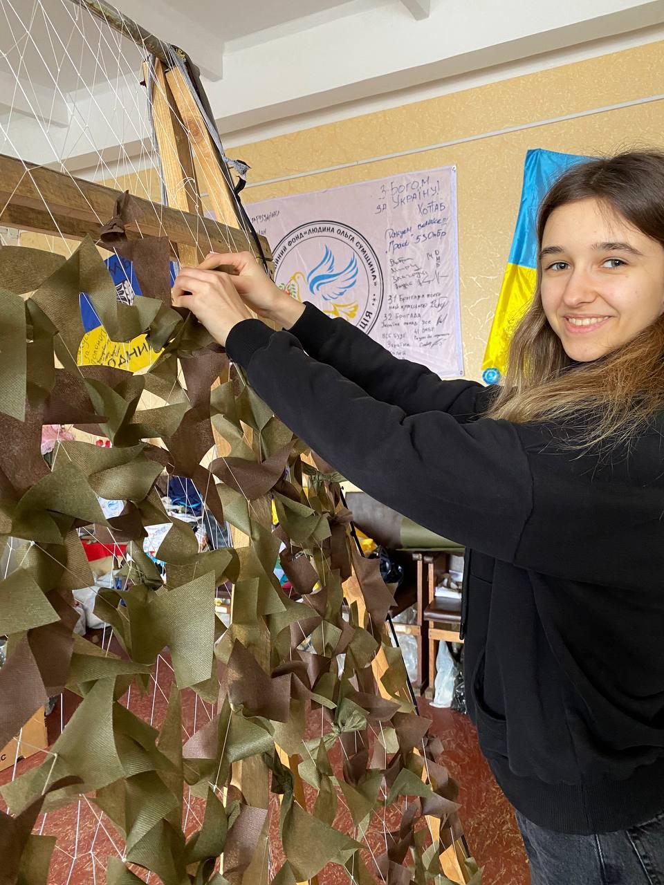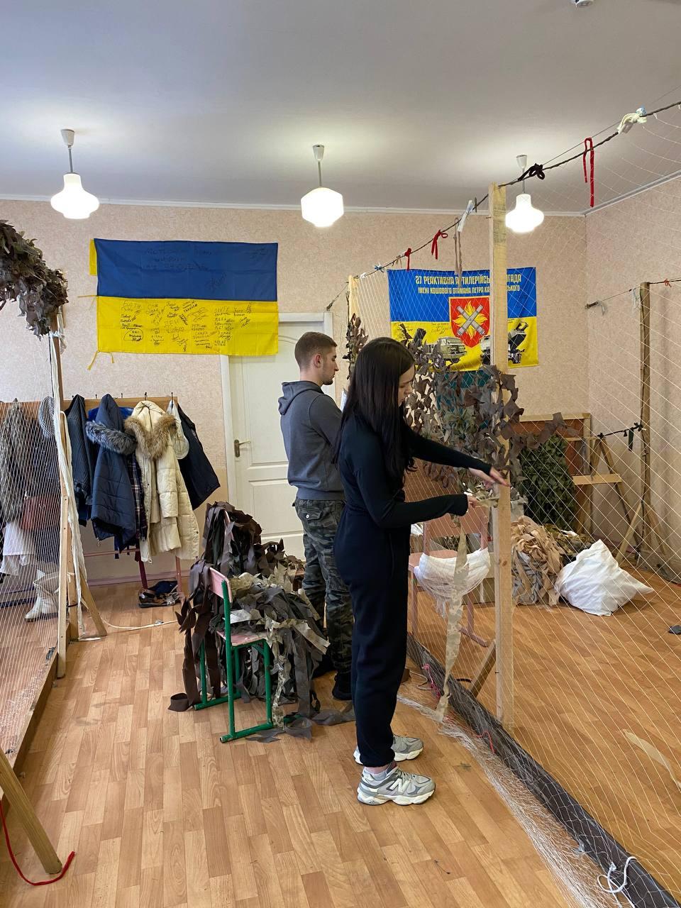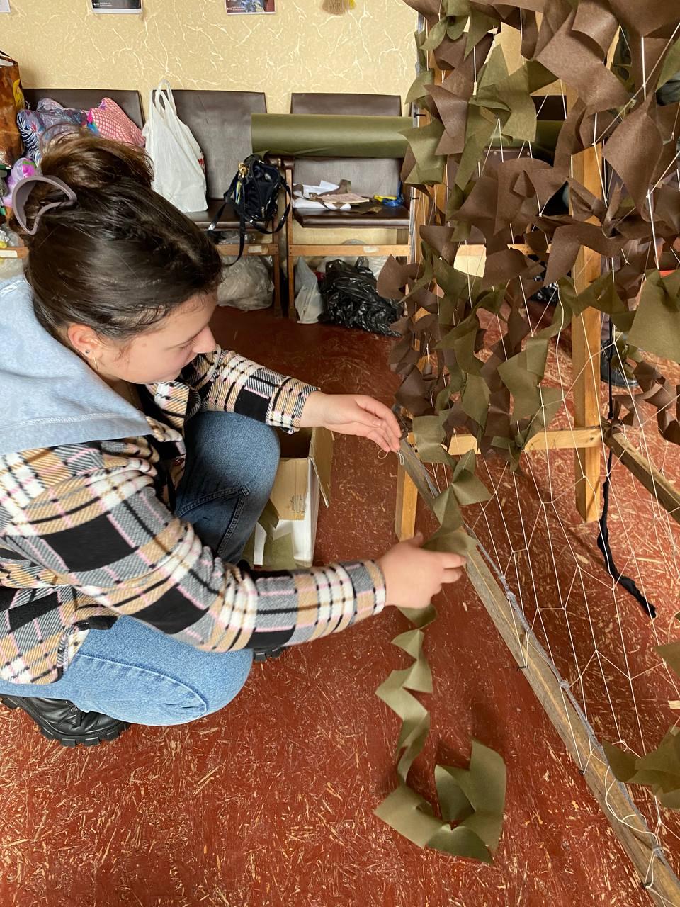 Так, Катерина Красій разом із Віталієм Кийковим традиційно завітали до волонтерського центру «Моторний вулик», а Євгенія Варварич і Каріна Берьозкіна вперше прийшли до Благодійного фонду «Людина Ольга Сумщина», який працює в Тростянецькій громаді, і відразу освоїли техніку плетіння сітки.