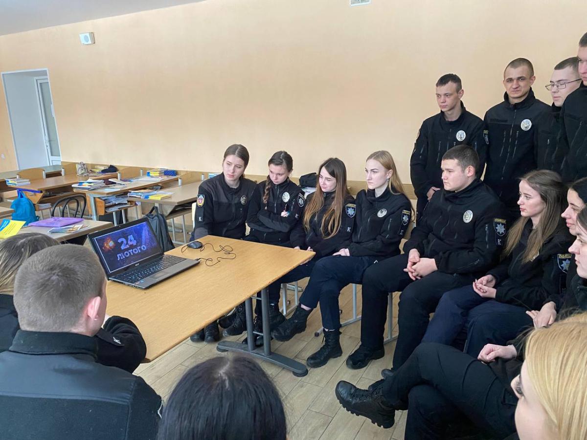 До другої річниці повномасштабного вторгнення російської армії в Україну доцент кафедри гуманітарних дисциплін Сумської філії ХНУВС Ганна Довгополова провела тематичну кураторську годину «24 лютого – День пам’яті жертв агресії російської федерації». Виховна бесіда мала на меті згуртувати курсантів, адже ніщо так не зближує, як спільні переживання, а також сприяти зняттю емоційного напруження серед здобувачів, яке викликає ця трагічна дата. Отже, кожен поділився спогадами про свої дії та емоції у перші дні вторгнення ворога.