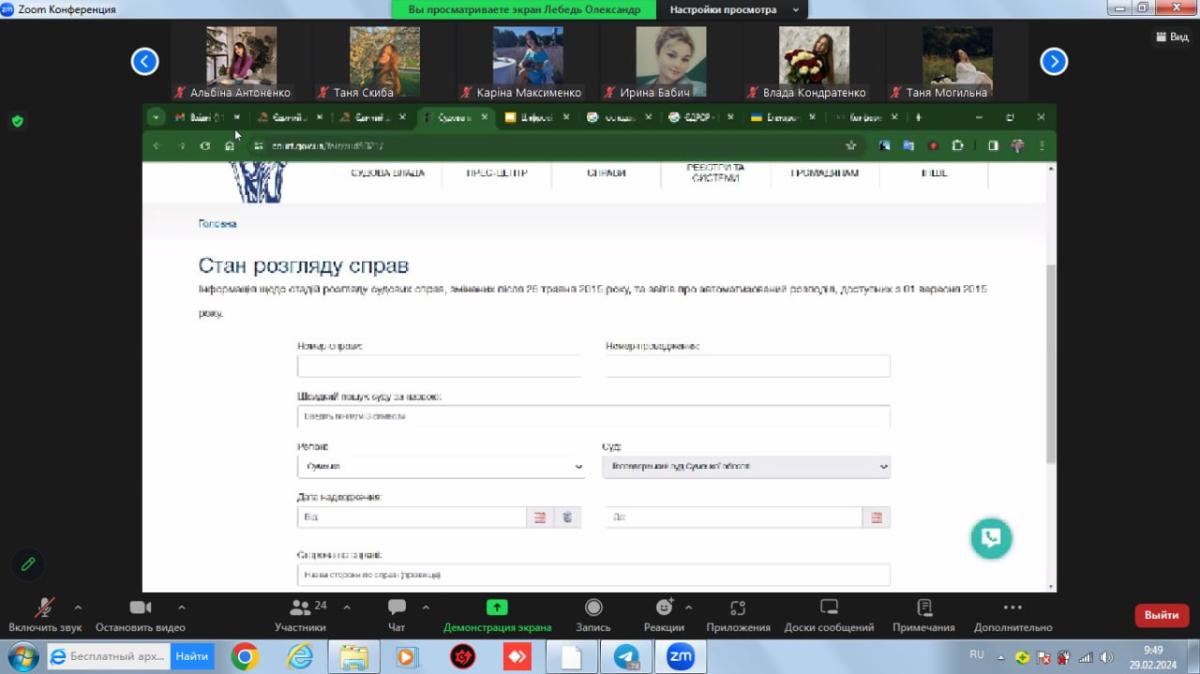 Доцентами кафедри гуманітарних дисциплін Сумської філії ХНУВС Юлією Самойловою та Ганною Довгополовою разом із в.о. керівника апарату Господарського суду Сумської області Олександром Лебедем для здобувачів 1 курсу спеціальності «Право» було проведено бінарне заняття з навчальної дисципліни «Іноземна мова» на тему «Господарський суд: основи діяльності та сучасні форми роботи».
