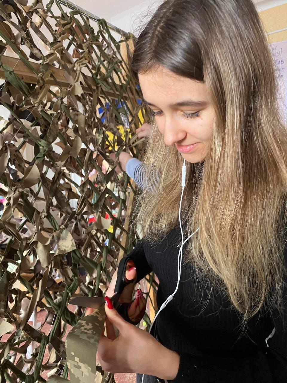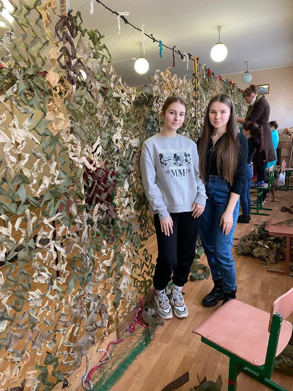 Студенти-першокурсники Сумської філії ХНУВС, які навчаються за спеціальністю «Право» Анна Радько, Аліна Шамрай, Євгенія Варварич та Каріна Берьозкіна вмотивовані і патріотично налаштовані. Вони в черговий раз долучилися до плетіння маскувальних сіток у волонтерських центрах міста Суми та Тростянець.