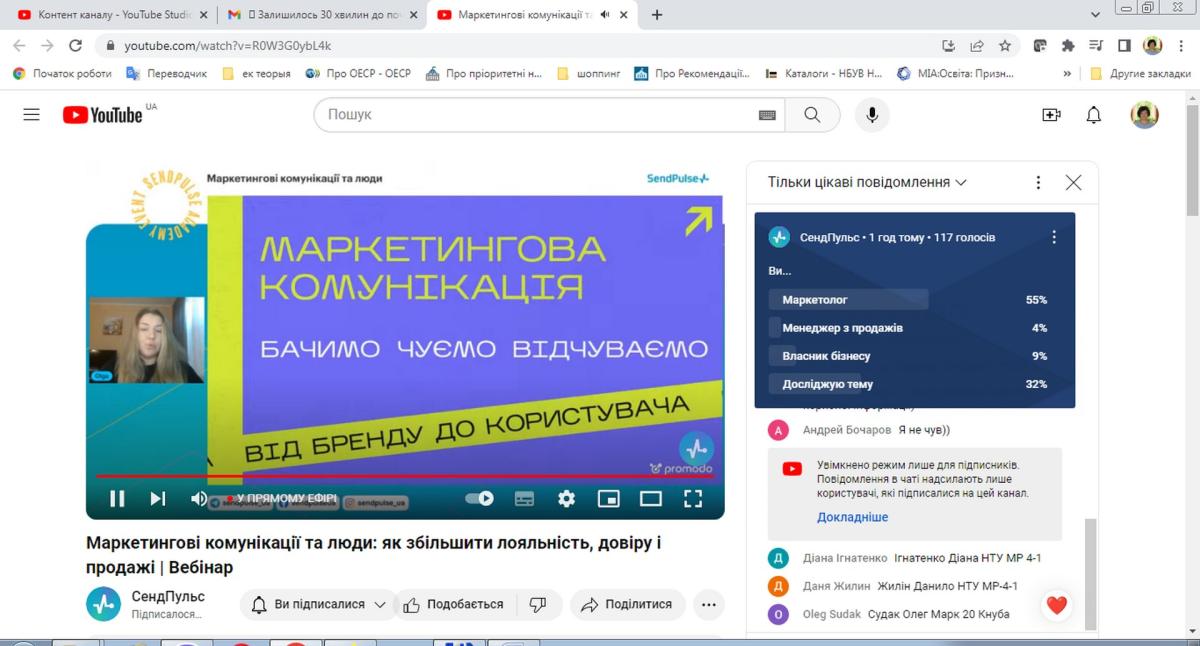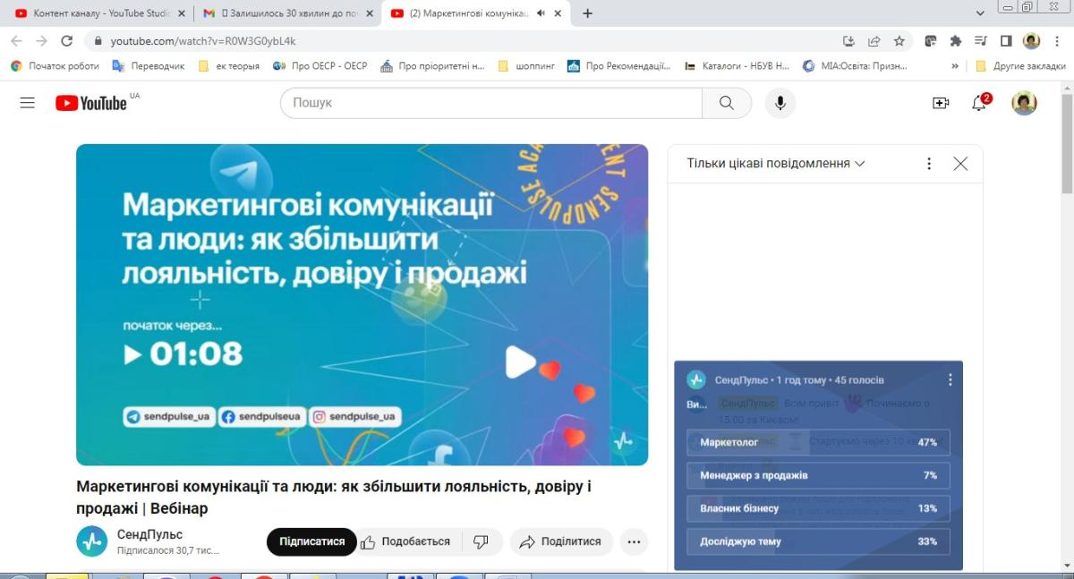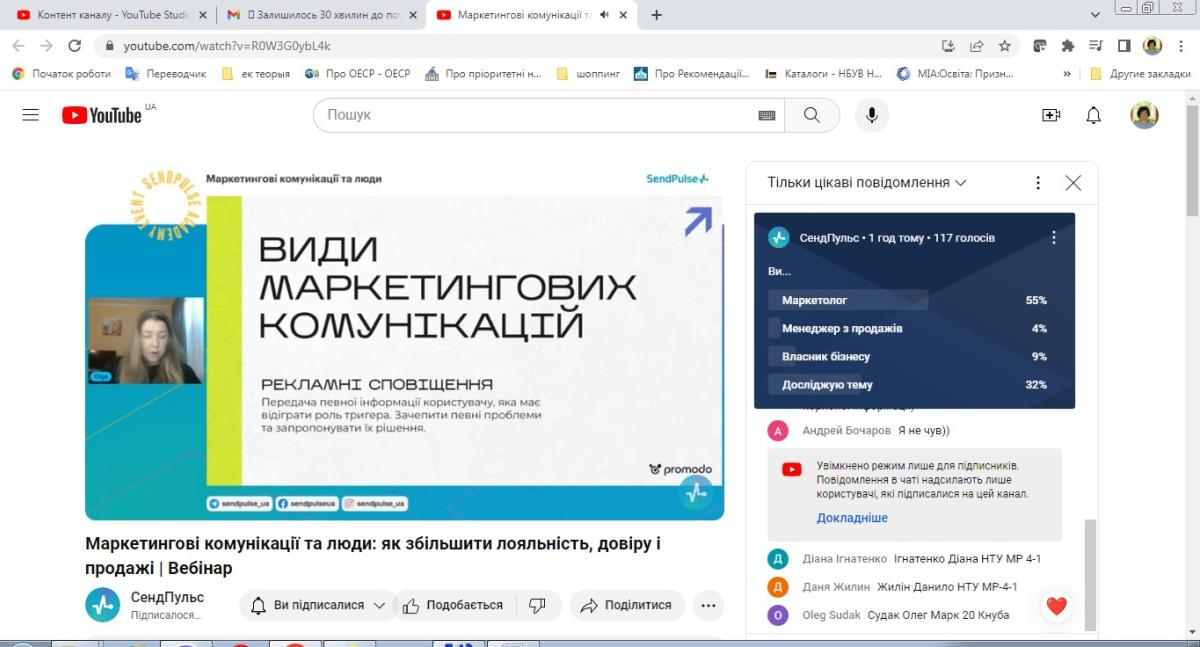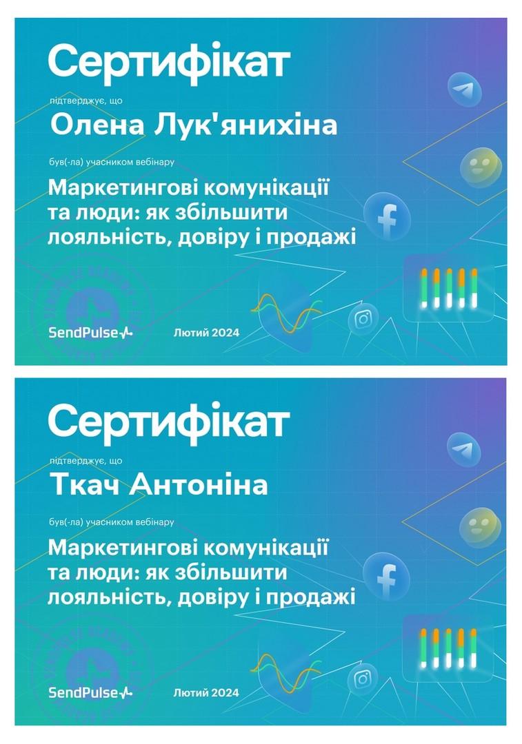 За результатами участі отримано сертифікати, а знання будуть використані під час опанування теми «Маркетингова політика комунікацій».