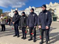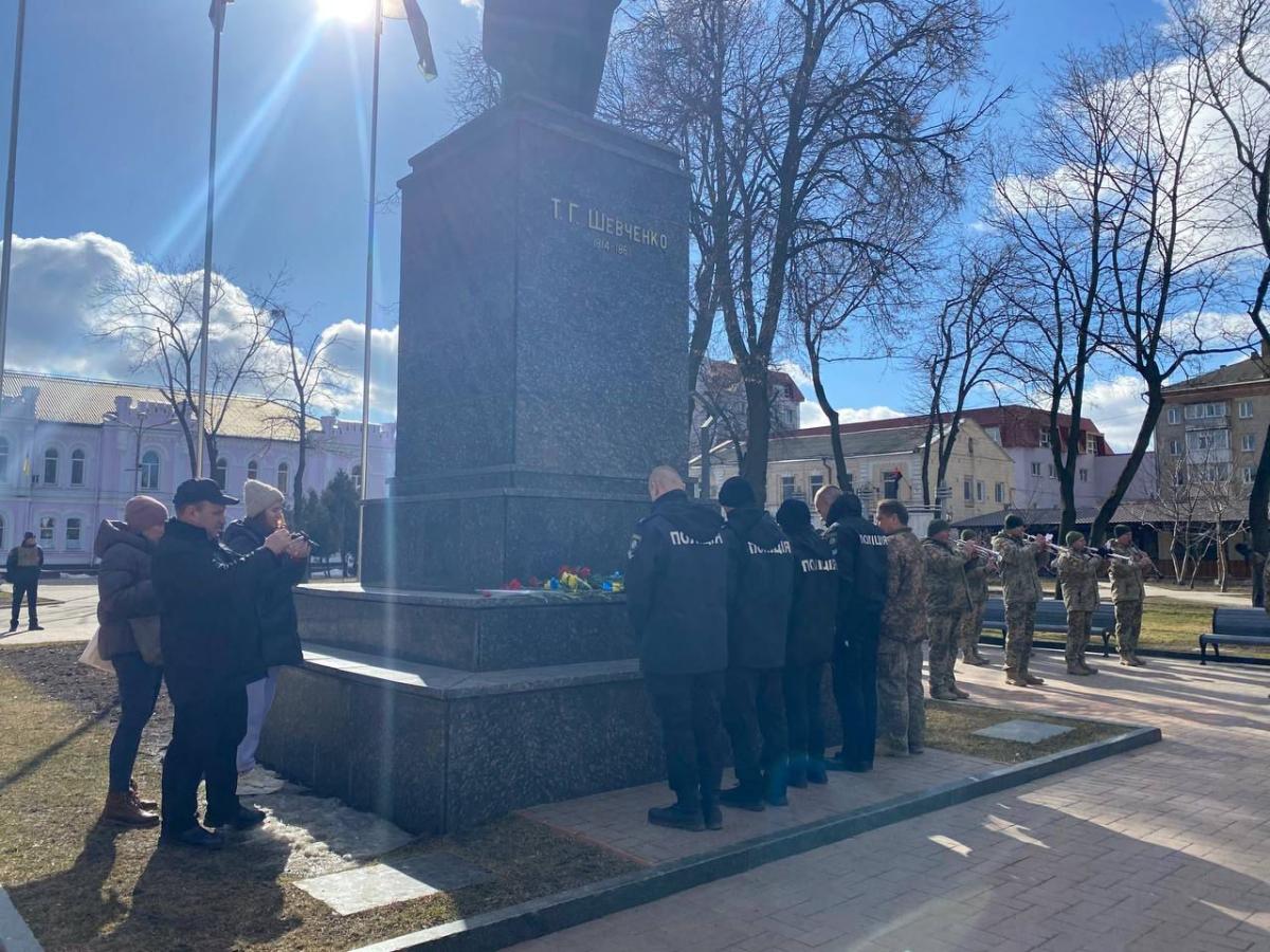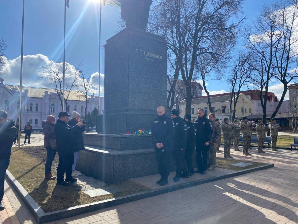 Разом із представниками влади, військовими та громадськістю міста поклали квіти до пам'ятника Шевченку.