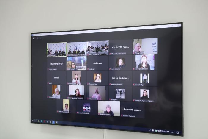 Телеміст пройшов за участю першого проректора Віктора Василенка, проректора Олександра Музичука, онлайн підключилися декани факультетів №№ 1-4, 6 – Віталій Романюк, Микола Марчук, Василь Кікінчук, Геннадій Звірянський, Оксана Брусакова і директор Сумської філії Сергій Лукаш.