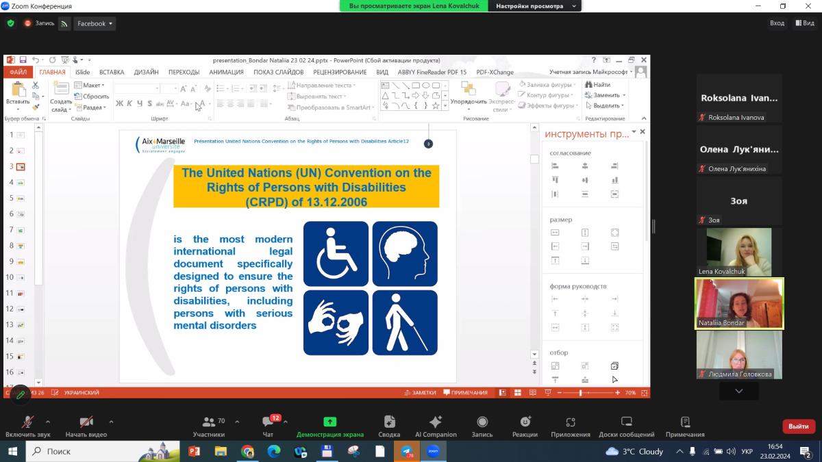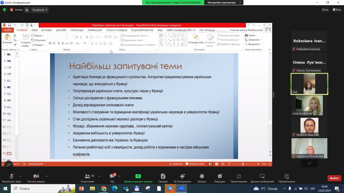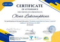 Завідувач кафедри соціально-економічних дисциплін Сумської філії ХНУВС Олена Лук’янихіна взяла участь у науковому семінарі «2 роки резильєнтності українських науковців». Організатори: Українська наукова діаспора у Франції, Фундація Дім гуманітарних наук, м. Париж (Fondation Maison des Sciences de l'Homme (FMSH), Університет Марселю (Aix Marseille University), ВГО «Інноваційний університет», Офіс підтримки вченого, ГО «Українська асоціація дослідників освіти».