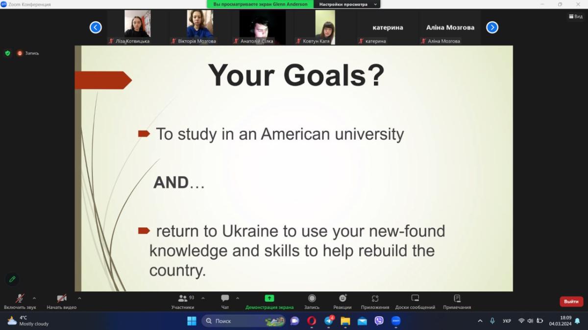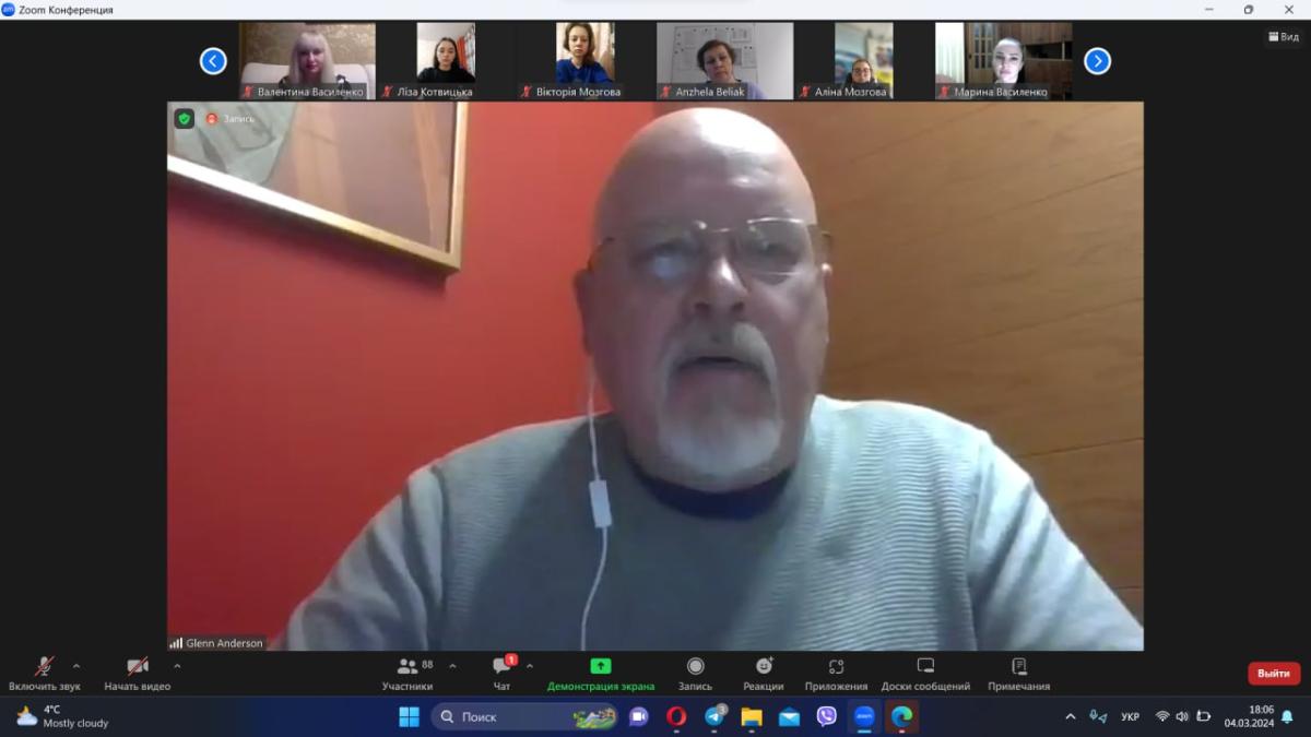 До наукового заходу також долучилися завідувач кафедри гуманітарних дисциплін Валентина Василенко, доценти Юлія Самойлова та Марина Василенко. Спікер зустрічей – запрошений викладач англійської мови Національного університету «Львівська політехніка», волонтер Корпусу миру США в Україні Ґленн Р. Андерсон, який презентував свої рекомендації щодо написання навчального/дослідницького есе (study/research objective essay) та правильного підбору ефективного зразка академічного письма (writing sample).