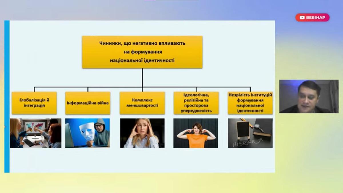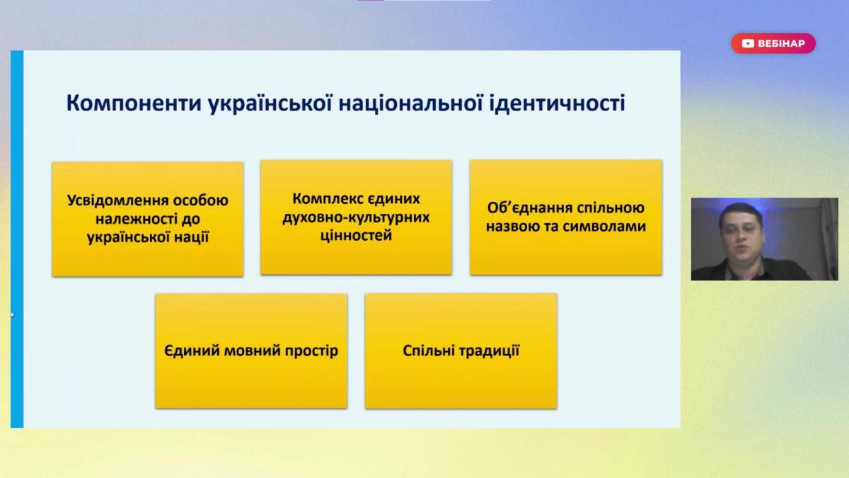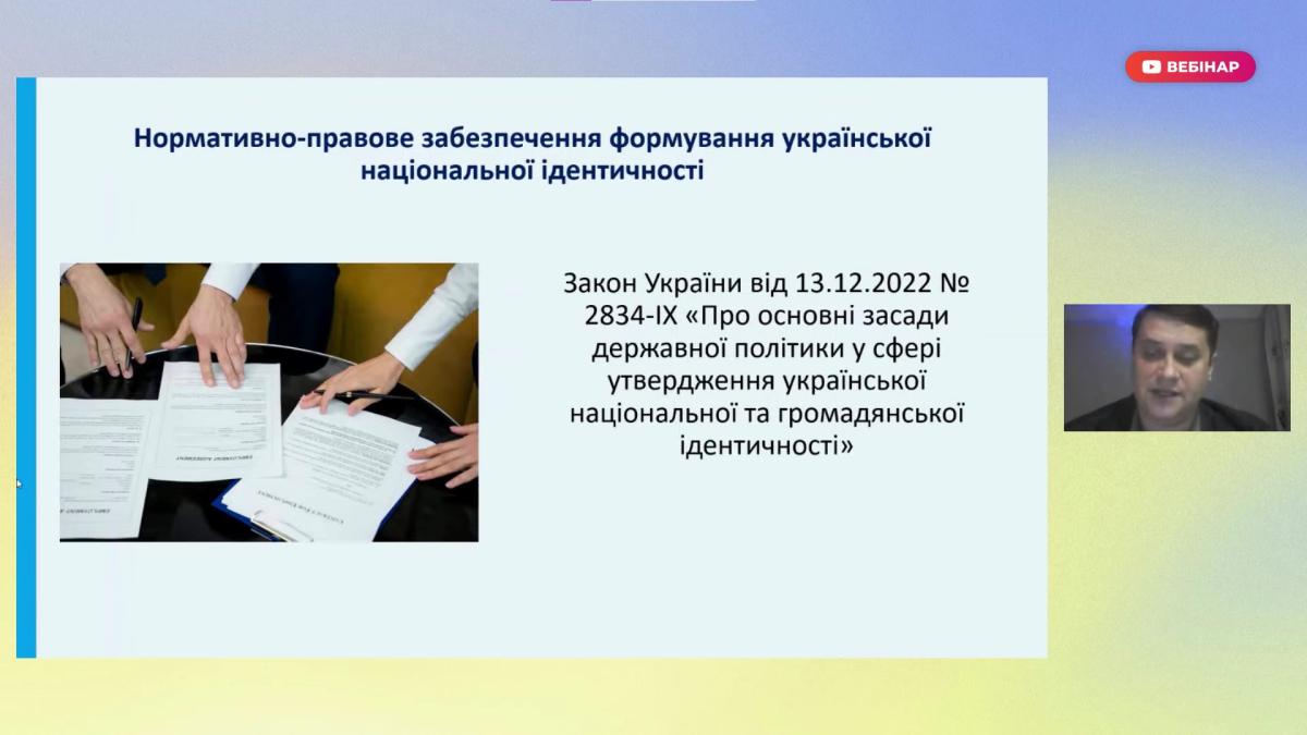 Під час вебінару представники Сумської філії ХНУВС долучилися до обговорення Закону України «Про основні засади державної політики у сфері утвердження української національної та громадянської ідентичності», в інтерактивній взаємодії з іншими учасниками дослідили сутність понять «патріотизм», «цінності» та їх значення для різних за віком громадян, адже усвідомлена українська національна та громадянська ідентичність молодого покоління можлива лише у випадку її формування на ціннісній основі.