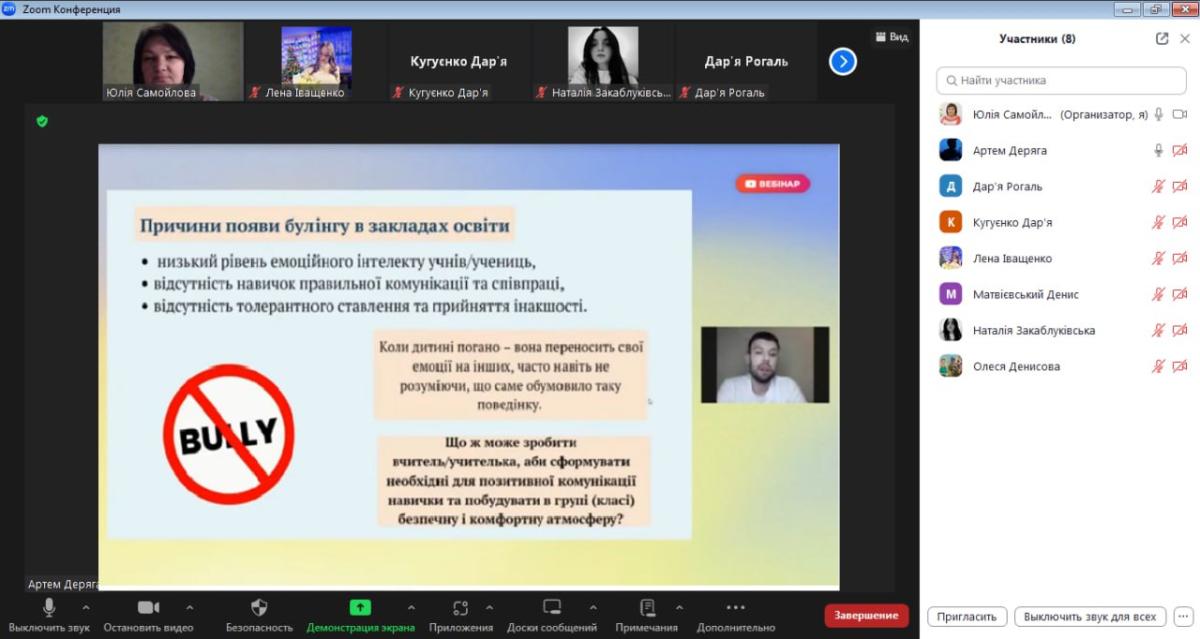 Таким чином, здобувачі вчилися пояснювати, що таке булінг, припиняти його та звертатися по допомогу, розпізнавати власне булінг і дружні піддражнювання, демонструвати емпатію до жертв насилля тощо.