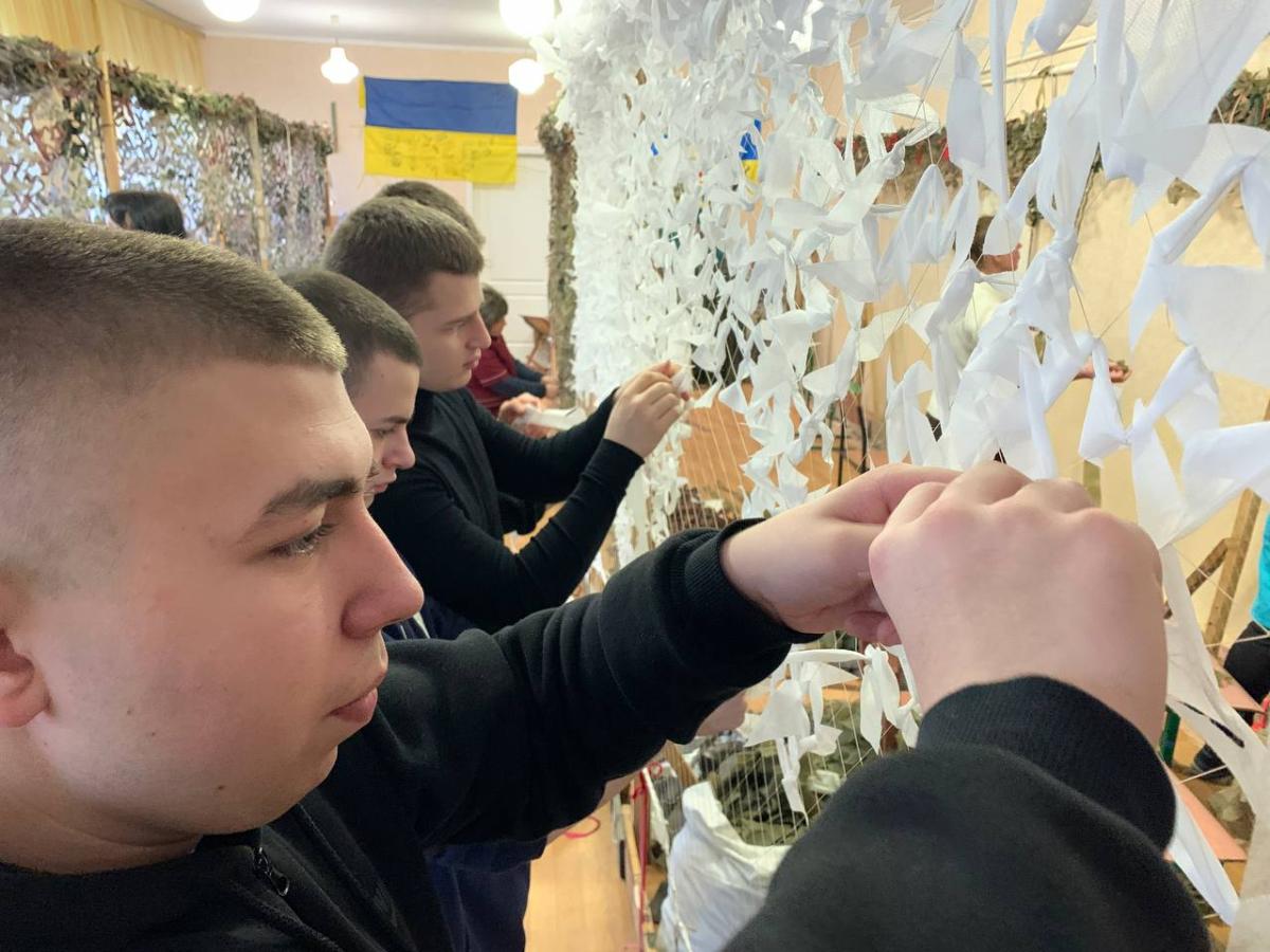 Курсанти Сумської філії Харківського національного університету внутрішніх справ продовжують активну волонтерську діяльність із плетіння маскувальних сіток, які є рятівним щитом для військових, техніки та окопів, роблячи їх менш помітними для ворога.