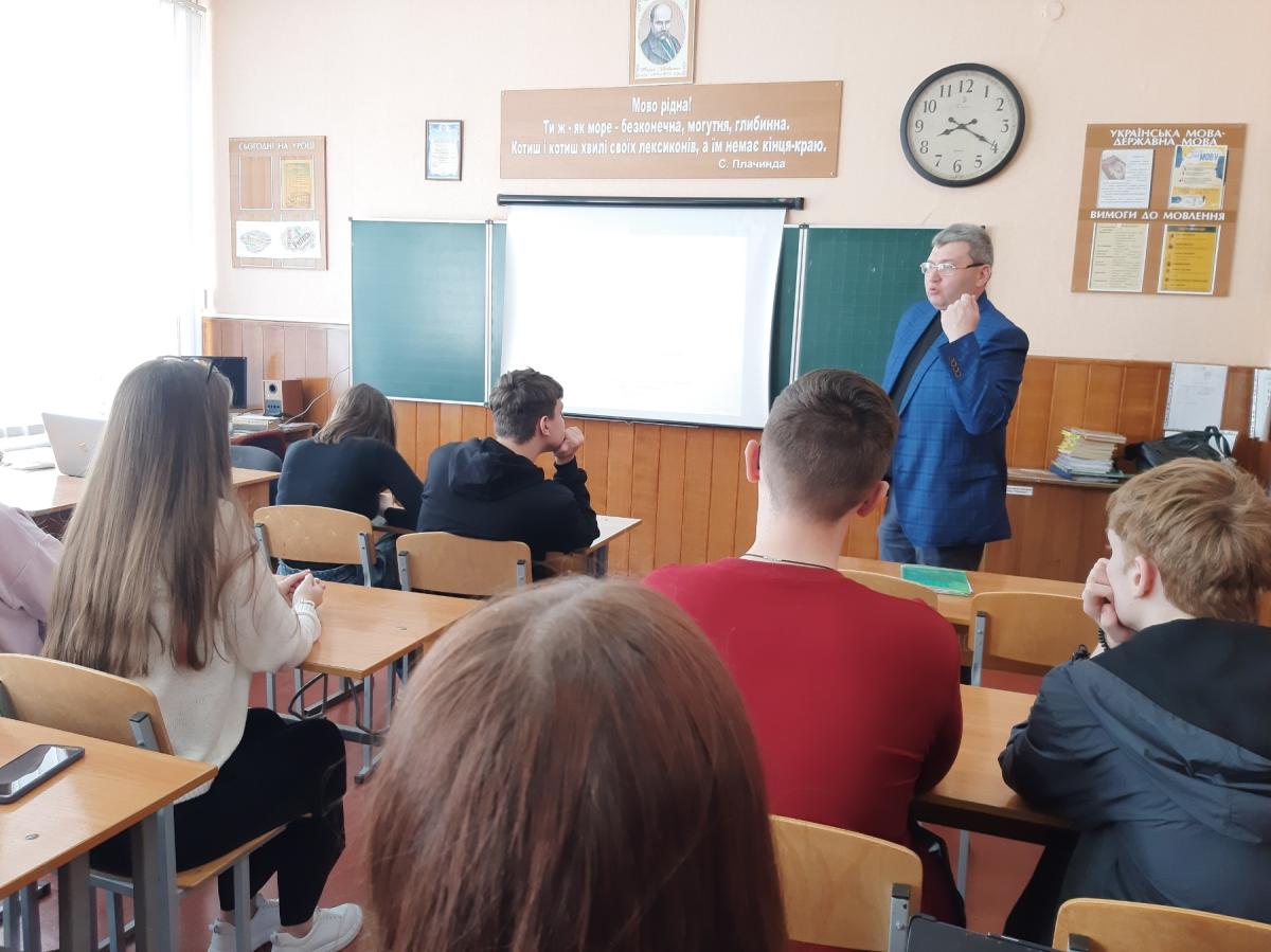 03 квітня 2024 року у межах Договору про співпрацю між Сумською філією ХНУВС та ЗОШ №18 м. Суми з метою ранньої профорієнтації та поширення досвіду з правової освіти доцентом кафедри соціально-економічних дисциплін Сумської філії ХНУВС Дементовим Володимиром Олександровичем було організовано та проведено виховну годину в форматі лекційно-тренінгового заняття з учнями 11-А класу ЗОШ №18 на тему: «Запобігання та протидія домашньому насильству, попередження торгівлі людьми, надання допомоги постраждалим особам».
