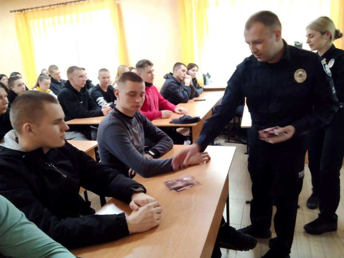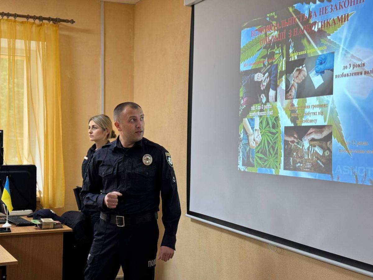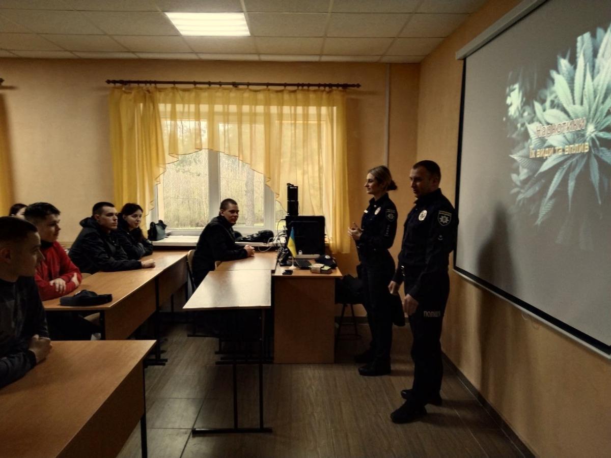 У ході зустрічі правоохоронці провели лекцію щодо шкідливості вживання наркотичних речовин та їх негативні наслідки. Курсанти переглянули презентацію про види наркотичних речовин, протидію їх вживанню та розповсюдженню, відповідальність за правопорушення, пов’язані з незаконним обігом наркотичних засобів, їх аналогів та прекурсорів.