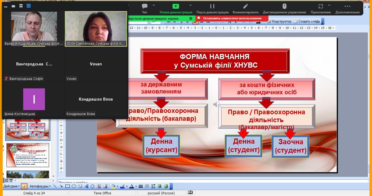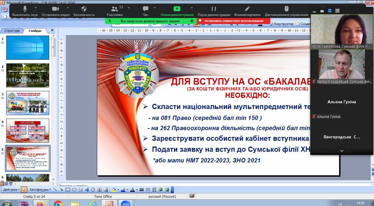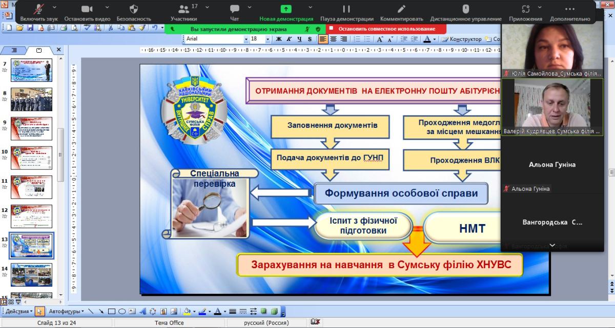 У рамках здійснення профорієнтаційної роботи, з метою популяризації університету серед учнівської молоді доцентом кафедри гуманітарних дисциплін Юлією Самойловою та провідним фахівцем філії Валерієм Кудрявцевим було організовано та проведено онлайн-зустріч з випускниками Сумського ЗЗСО №26 Сумської міської ради.