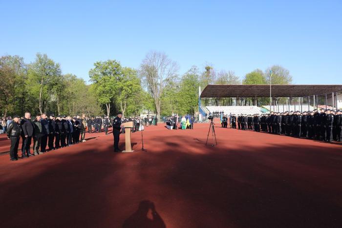 До випускників з напутніми словами звернувся ректор університету генерал поліції третього рангу Валерій Сокуренко: «Будьте сильними й незламними, любіть свій рідний край, свою землю, свій народ, беззастережно вірте у нашу Перемогу, наближайте її своєю відданою службою. Пам’ятайте наших Героїв-випускників, які віддали свої життя за вільну й незалежну Україну. Вони – наша гордість і слава, приклад стійкості, сили духу та справжнього патріотизму. Бажаю усім вам, вашим рідним і близьким найміцнішого здоров’я, добра, злагоди та найскорішої перемоги над ворогом. Служіть так, щоб вас поважали люди та оберігав Господь Бог! Слава Україні!».