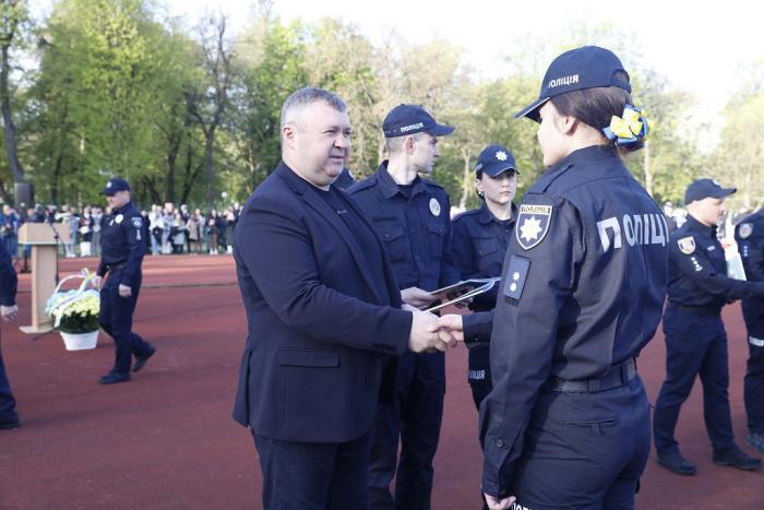 Молодих лейтенантів поліції привітали представники органів державної влади та місцевого самоврядування, Сил безпеки та оборони, керівники ГУНП в областях, інші.