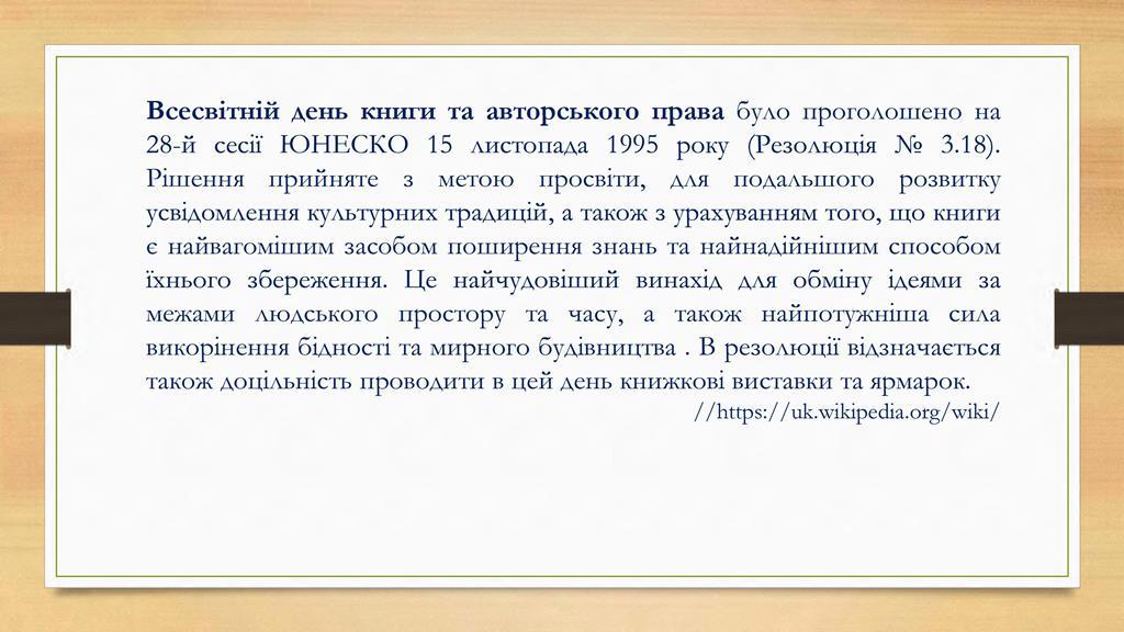 23 квітня, світ відзначає Всесвітній день книги та авторського права – свято авторів, видавців, критиків, бібліотекарів, читачів і всіх-всіх, хто часом залишається «за лаштунками» книговидання.