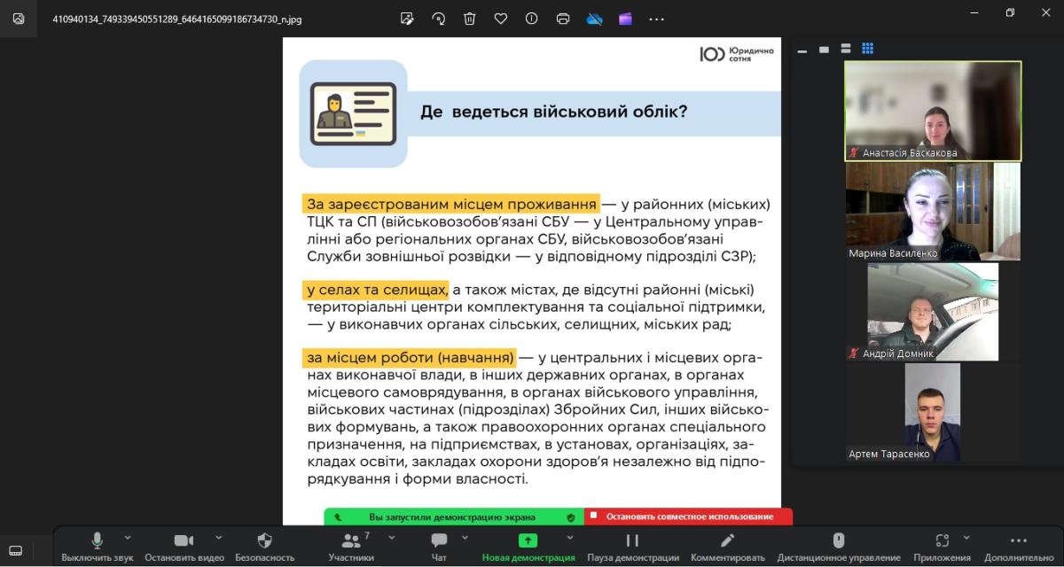 Після завершення обговорення учасники підбили підсумки зустрічі, відзначили важливість правопросвітницької діяльності для покращення надання консультаційних послуг військовозобов’язаним, домовилися про подальшу співпрацю та проведення спільних заходів.