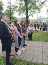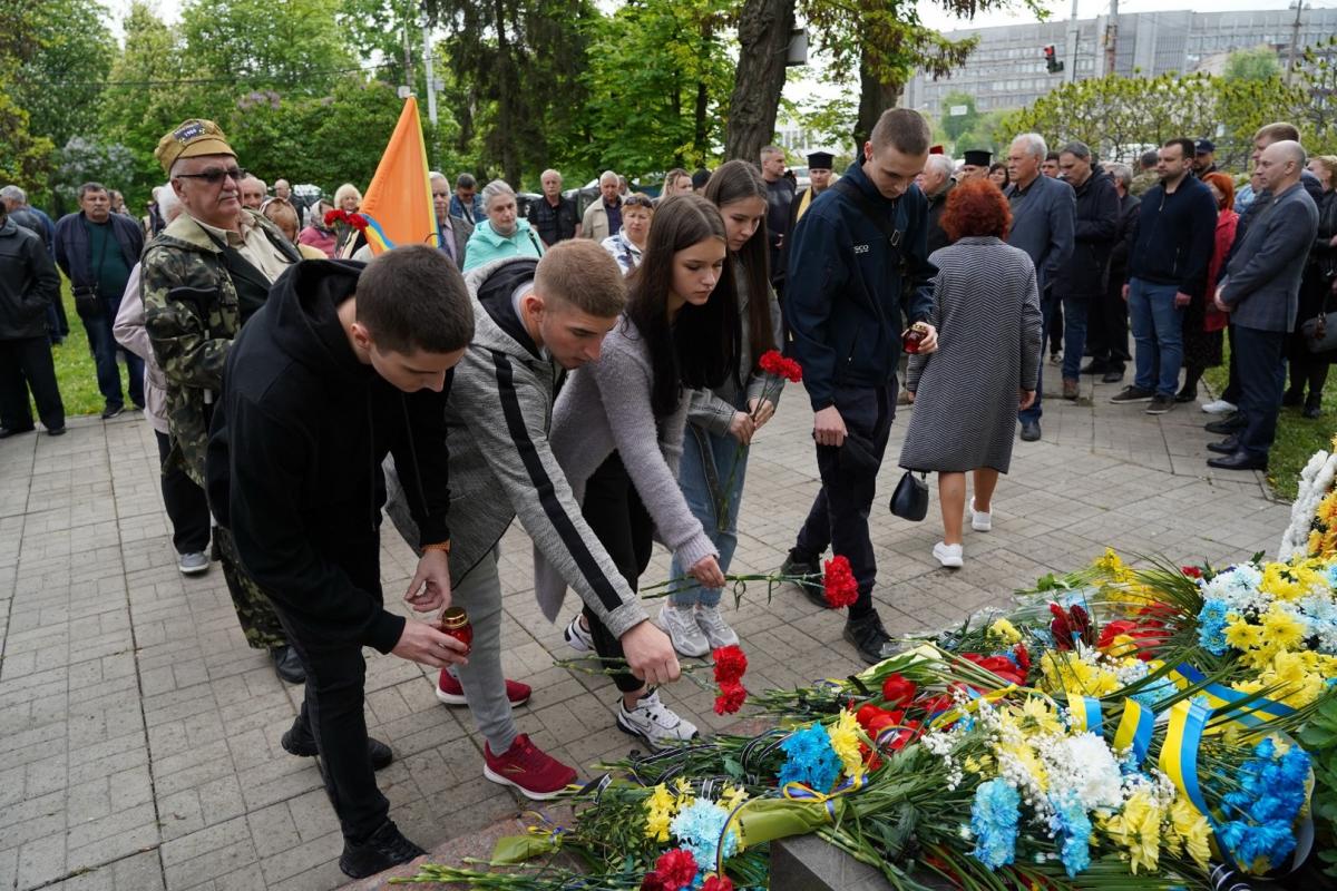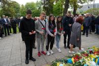 Хвилиною мовчання вшанували пам’ять усіх, хто загинув унаслідок трагедії на атомній станції, та поклали квіти до пам’ятного знаку Жертвам Чорнобиля.