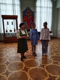 На прикладі живописного твору «Ганнуся» Георгія Мелихова й комплексів жіночого традиційного вбрання Сумщини кін. ХІХ – поч. ХХ ст. (на манекенах), представлених в експозиції музею, студенти мали можливість розглянути окремі типи народного одягу, притаманного нашому регіону та переглянути колекцію кролевецьких рушників.