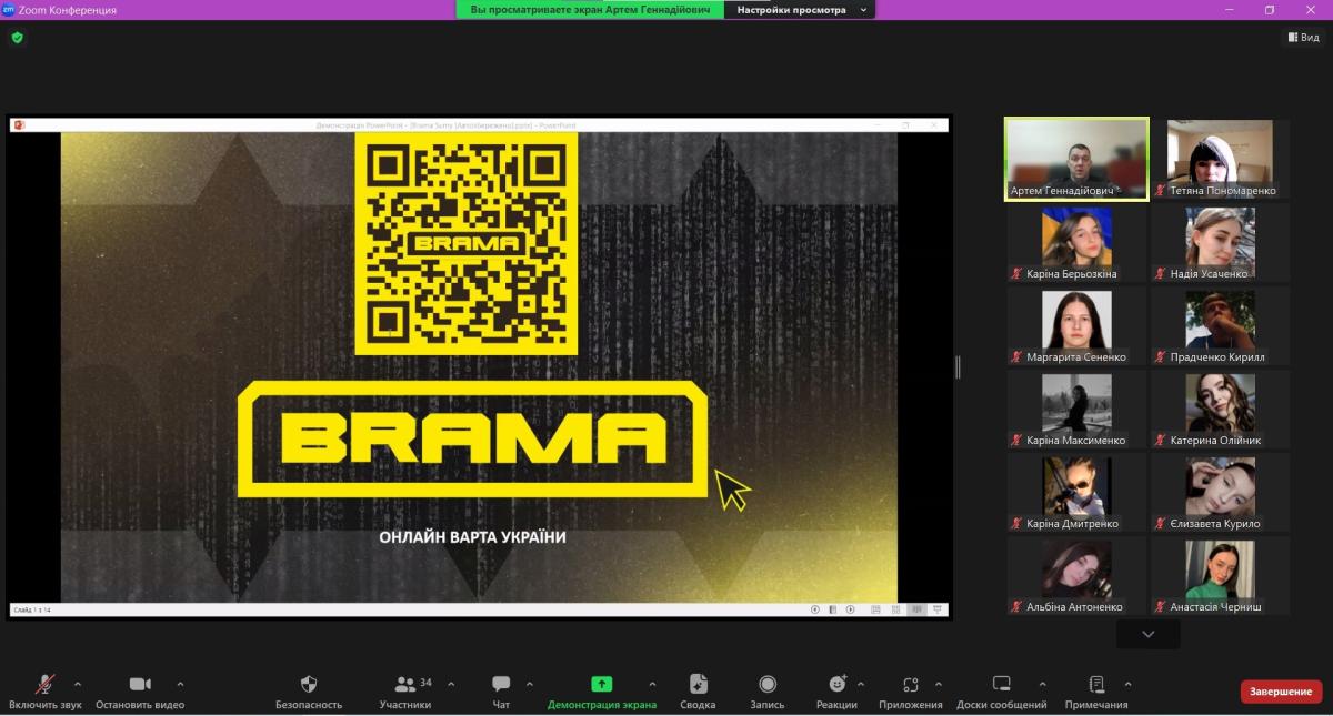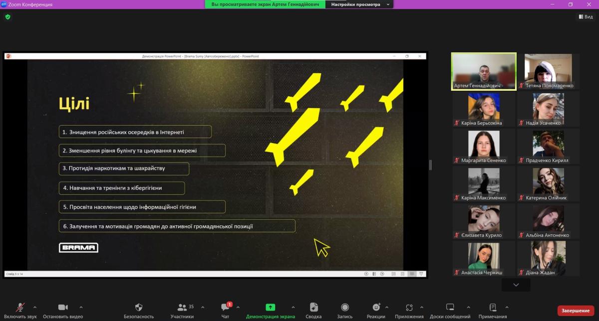15 травня 2024 року доцентом кафедри гуманітарних дисциплін Сумської філії ХНУВС Тетяною Пономаренко спільно зі старшим оперуповноваженим Відділу протидії кіберзлочинам в Сумській області Департаменту кіберполіції Національної поліції України Артемом Бухтіаровим проведене бінарне заняття для здобувачів вищої освіти 1 курсу спеціальності 081 Право (право), у ході якого презентовано платформу «Брама», що поєднує низку проєктів, реалізованих у синергії Кіберполіції України та волонтерів. Основною метою даного проєкту є протидія кремлівській пропаганді та фейковим або проросійським ресурсам у мережі Інтернет, а також підвищення рівня цифрової безпеки українських громадян.
